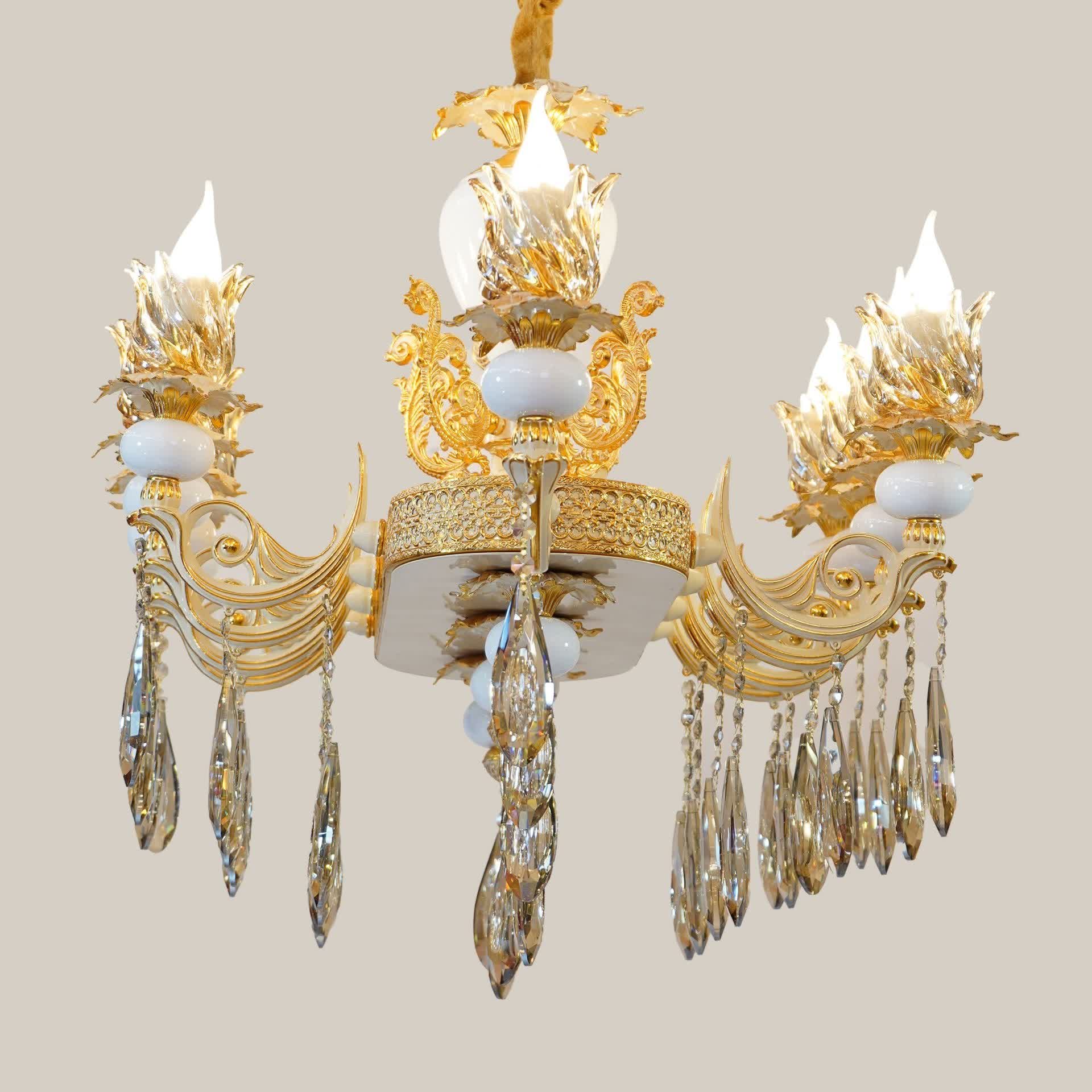 لوستر جزیره 20*60 آتوسا10 لامپ سنگی کرم طلا مبلمونسرا مدل 244651