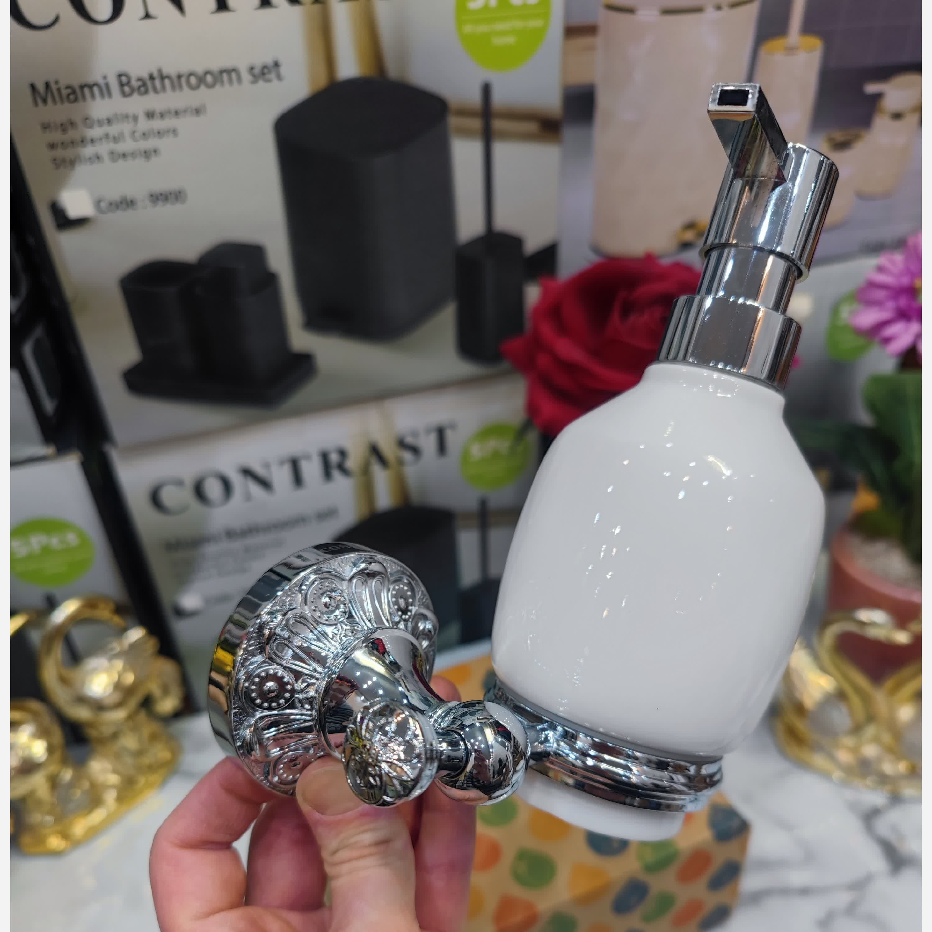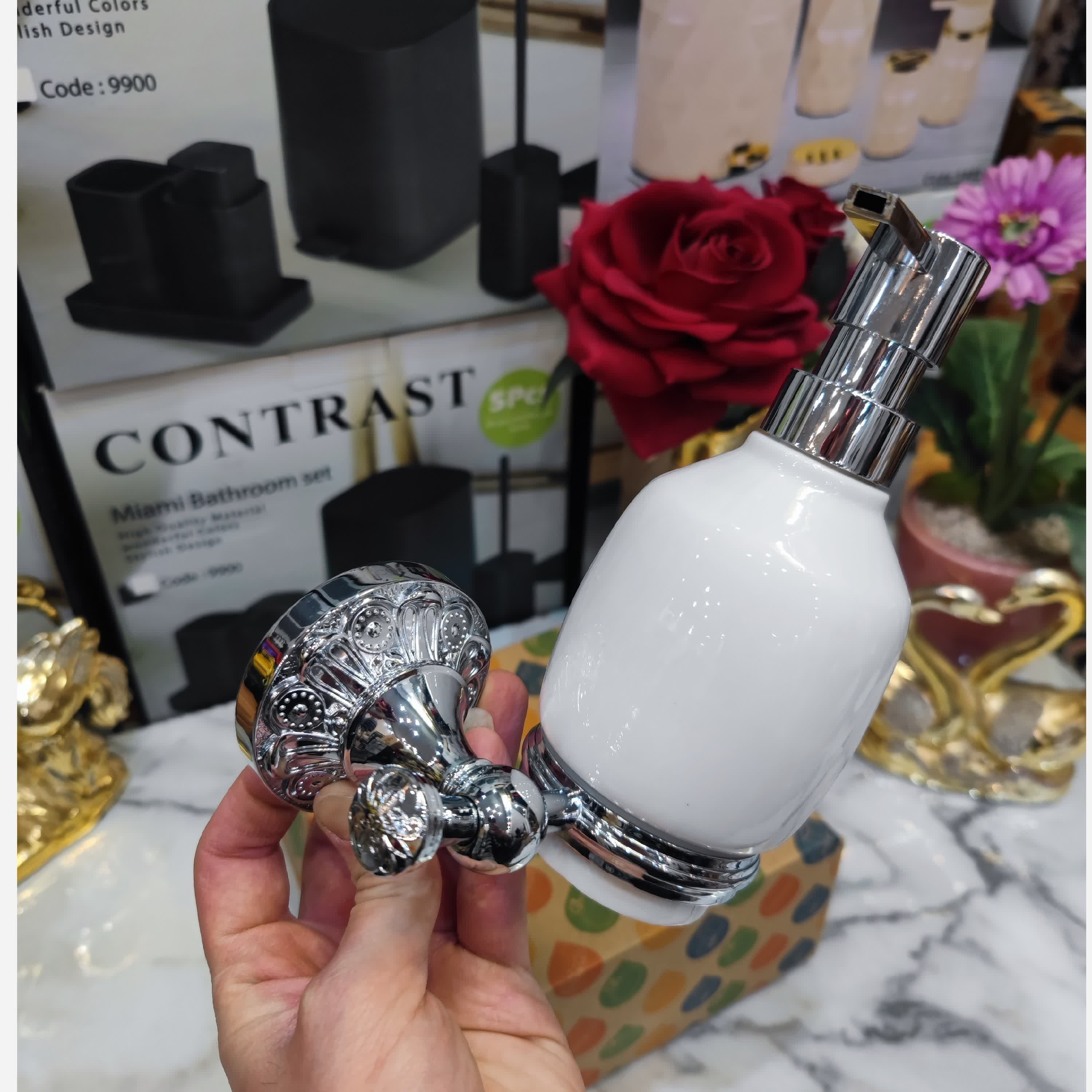 جای مایع دیواری وارداتی برند کنتراست نو آکبند بسیار زیبا و باکیفیت و بی نظیر و خاص کد 49 کروم رنگ بسیار زیبا و شکیل و پرطرفدار کروم براق ساخته شده از استیل و برنج و سرامیک آبکاری کروم به همراه مخزن مایع سرامیک باکیفیت عالی و شکیل و سرپمپ باکیفیت عالی تضمین کیفیت ساخت عالی و مناسب ترین قیمت دارای کارتن و جعبه اختصاصی و باکیفیت محصول قابلیت استفاده در سرویس بهداشتی یا حمام یا آشپزخانه یا محل کار ارسال سریع به تمام نقاط کشور برای خریداران عزیز