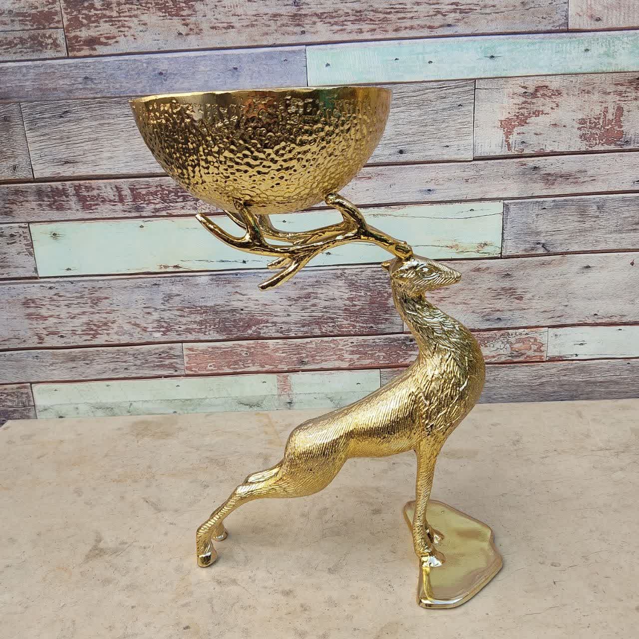 آجیل خوری آلومینیومی مدل گوزن کشیده در دو رنگ طلایی و سیلور مبلمونسرا مدل 265709