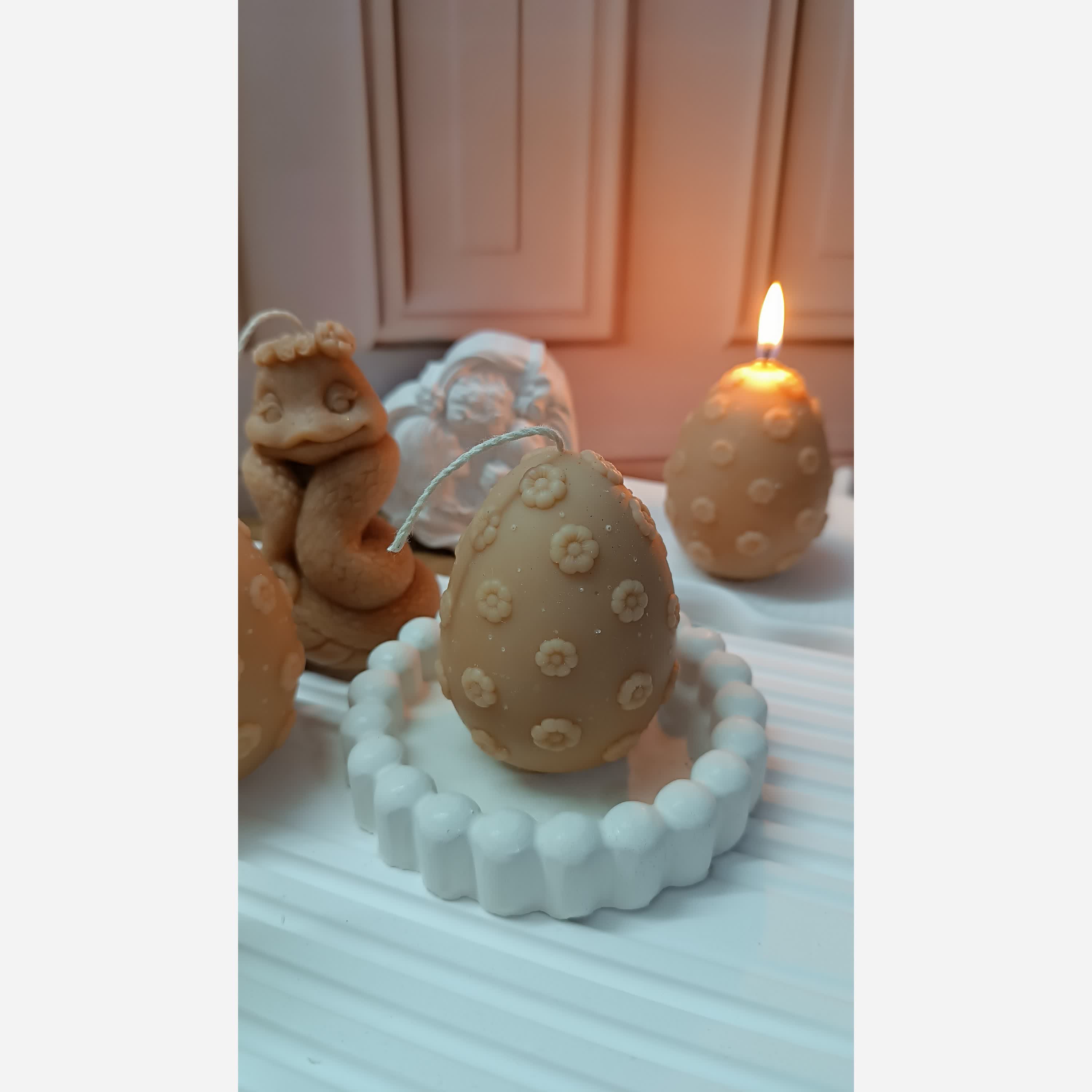 شمع زیبای تخم مرغ طرحدار با نقش های برجسته گل بابونه زینت بخش سفره های هفت سین شما