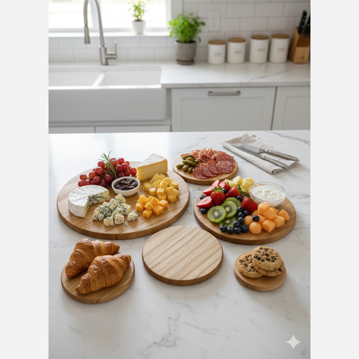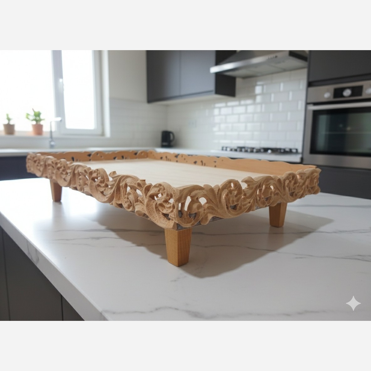 سینی گرد و تخته سرو 5تایی و سینی منبتی مبلمونسرا مدل 277125