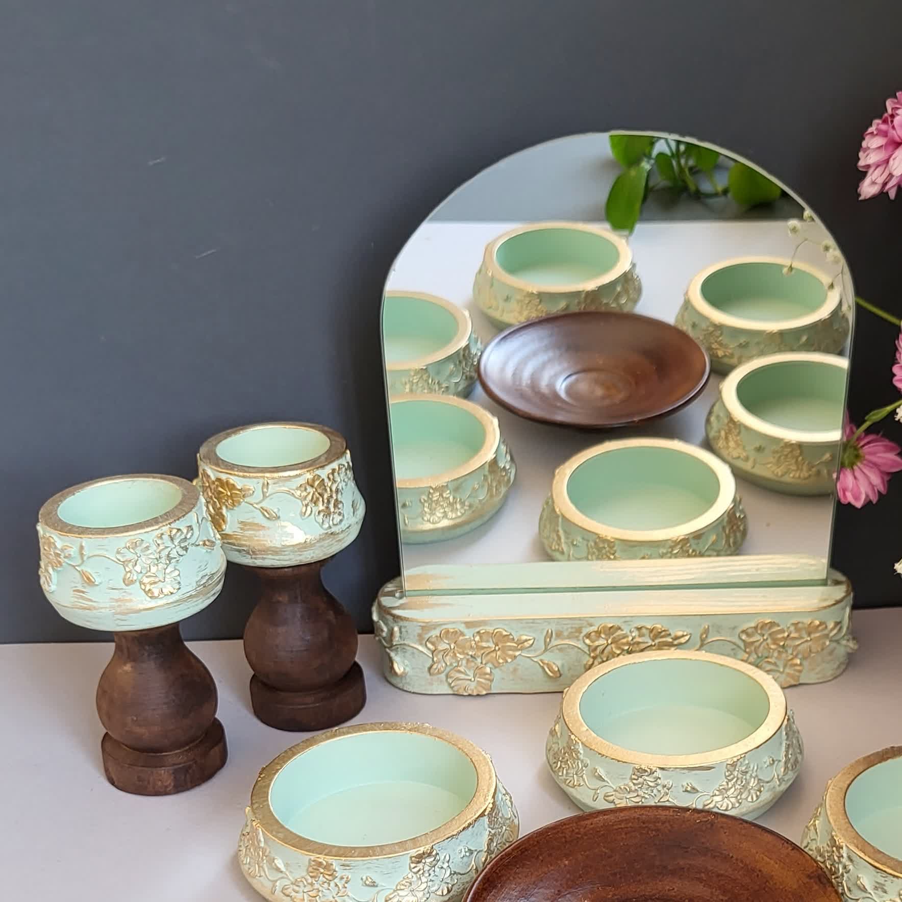 ست آینه و شمعدان پایه چوبی با رنگ دلخواه مبلمونسرا مدل 263785