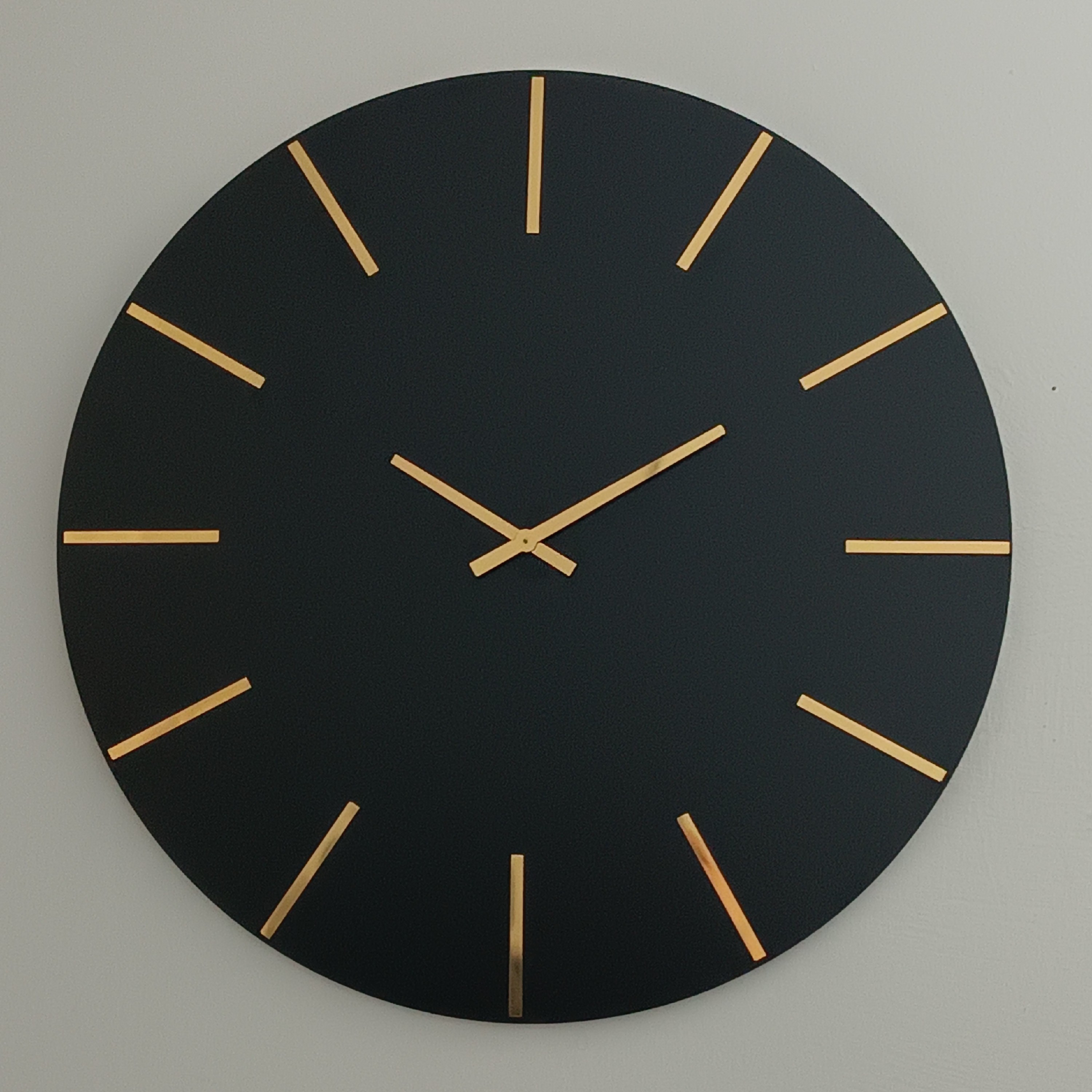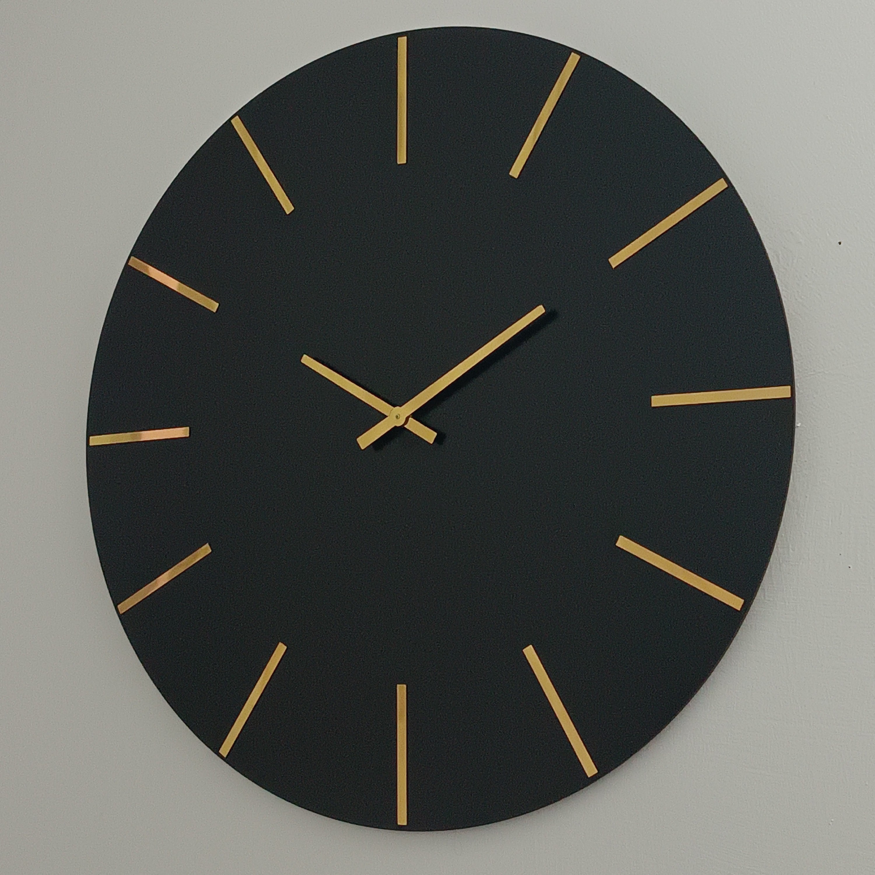 ساعت دیواری ساده چوبی مشکی مولتی طلایی مبلمونسرا مدل 237580