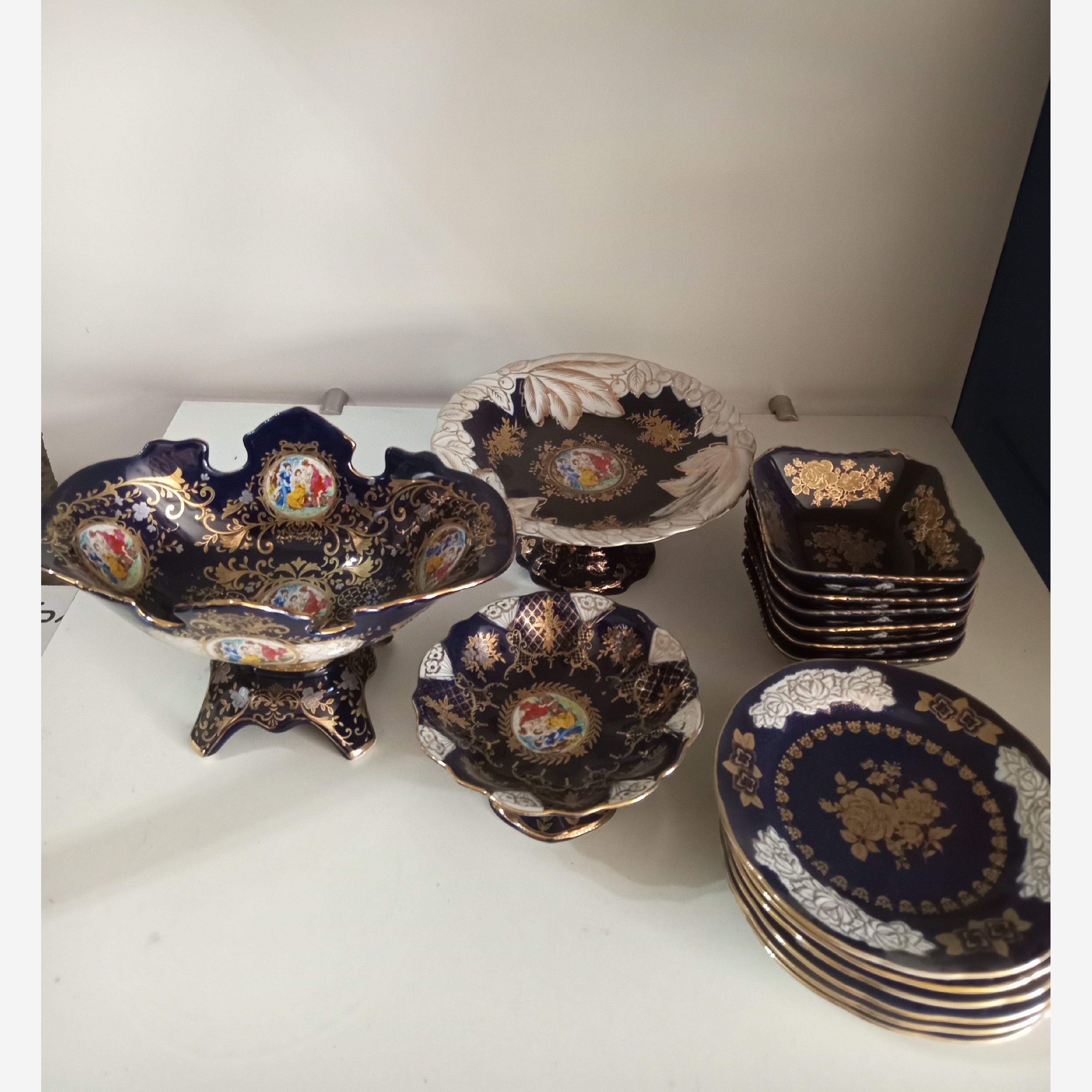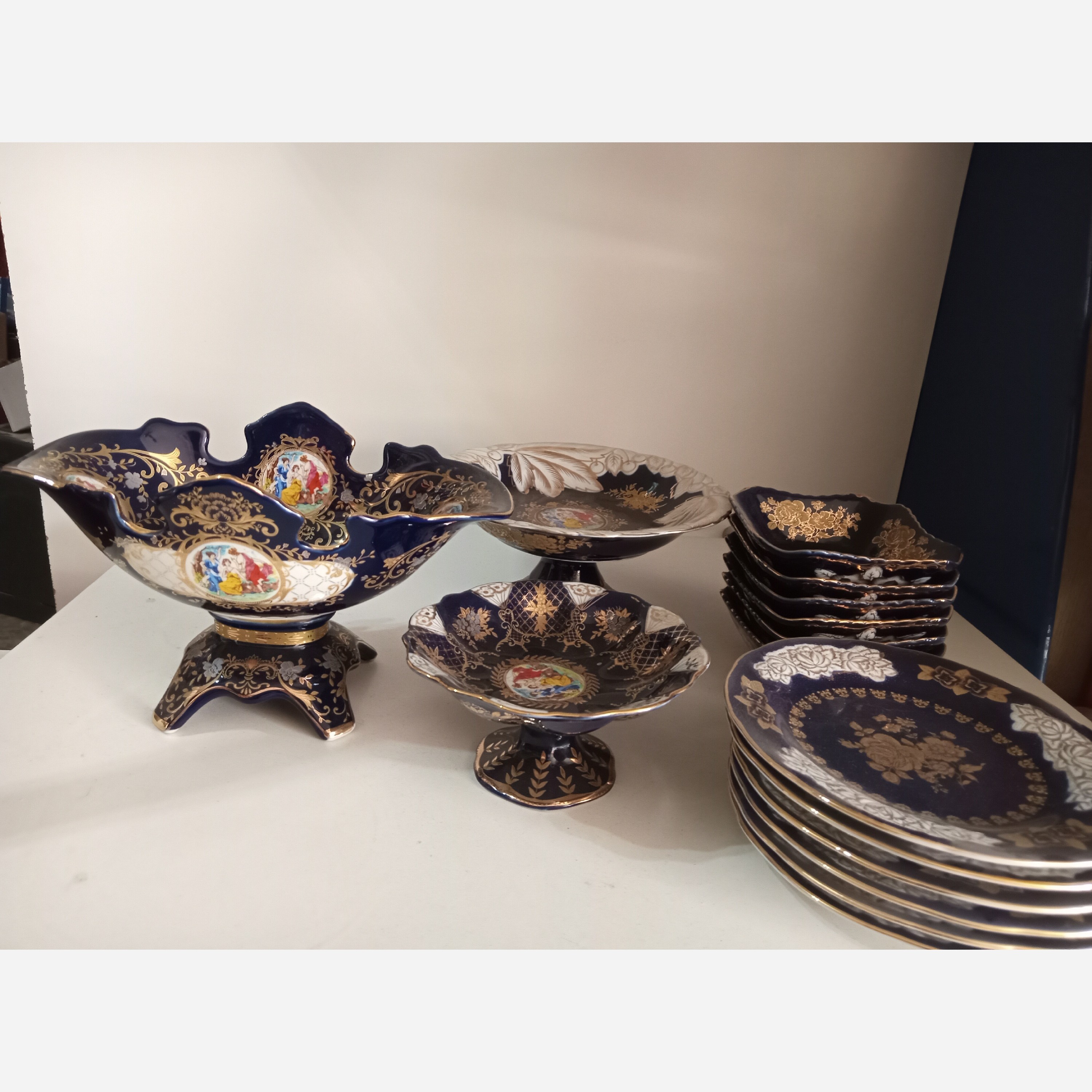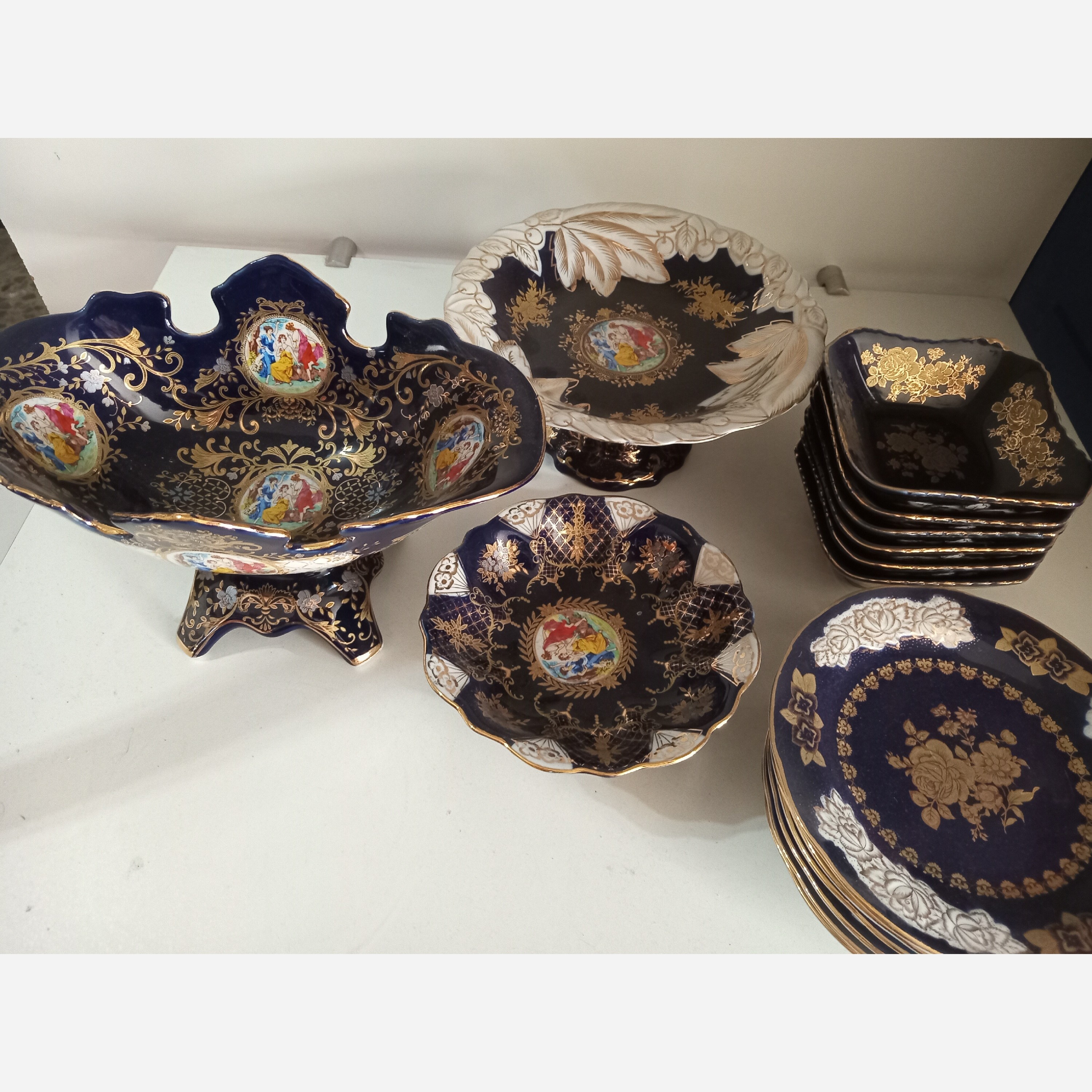 شامل 6عددپیش دستی و6عددپیاله وکاسه آجیل کشکولی ویک عددشیرینی خوری ویکعددشکلات کوچک ویک عددقوری بزرگ