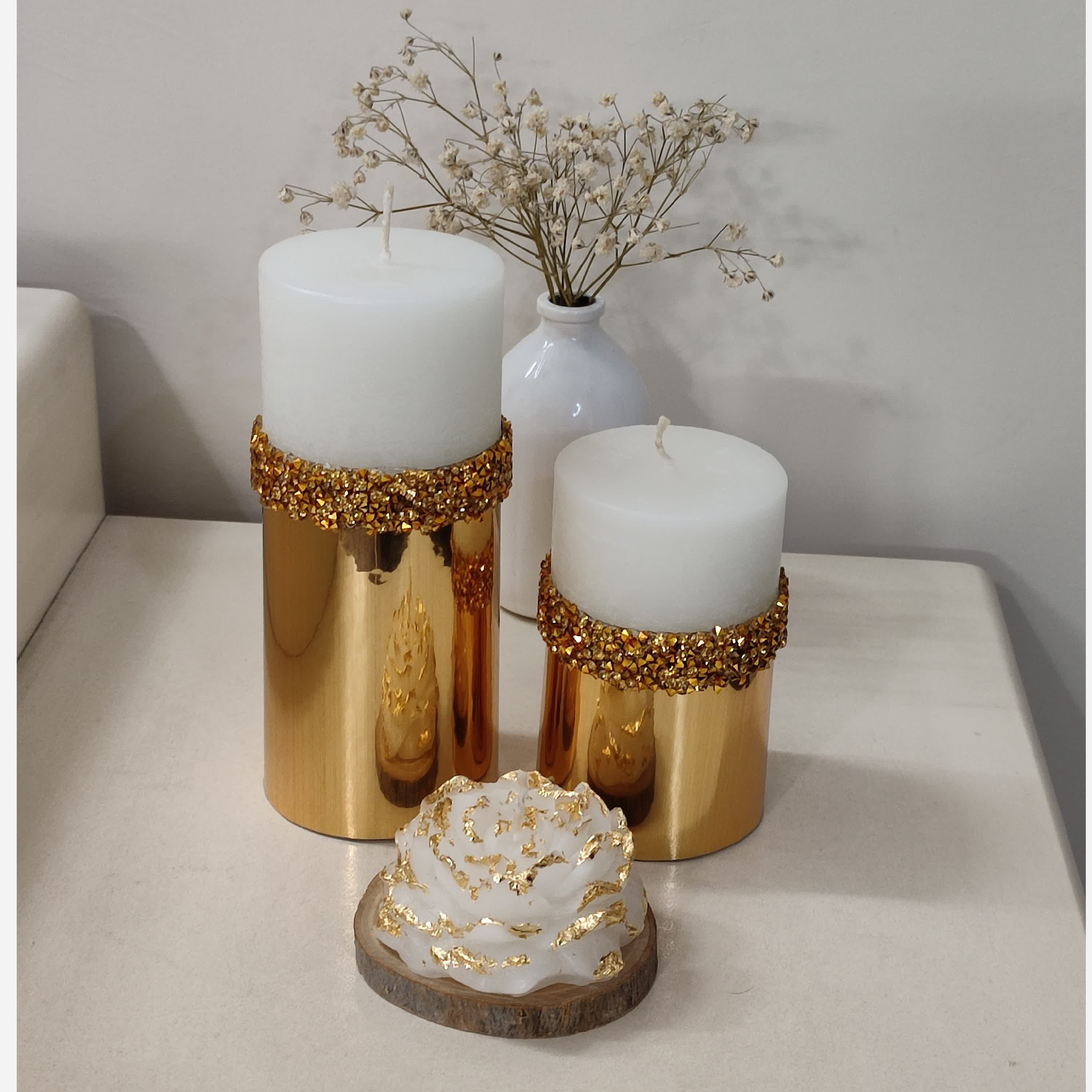 شمع سه عددی طلایی مبلمونسرا مدل 286623