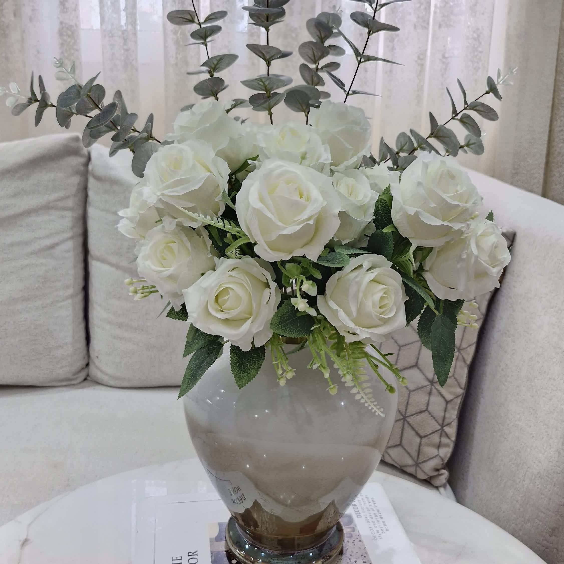 گل مصنوعی بوته رز باکارا وارداتی جنس پارچه ای مبلمونسرا مدل 258725