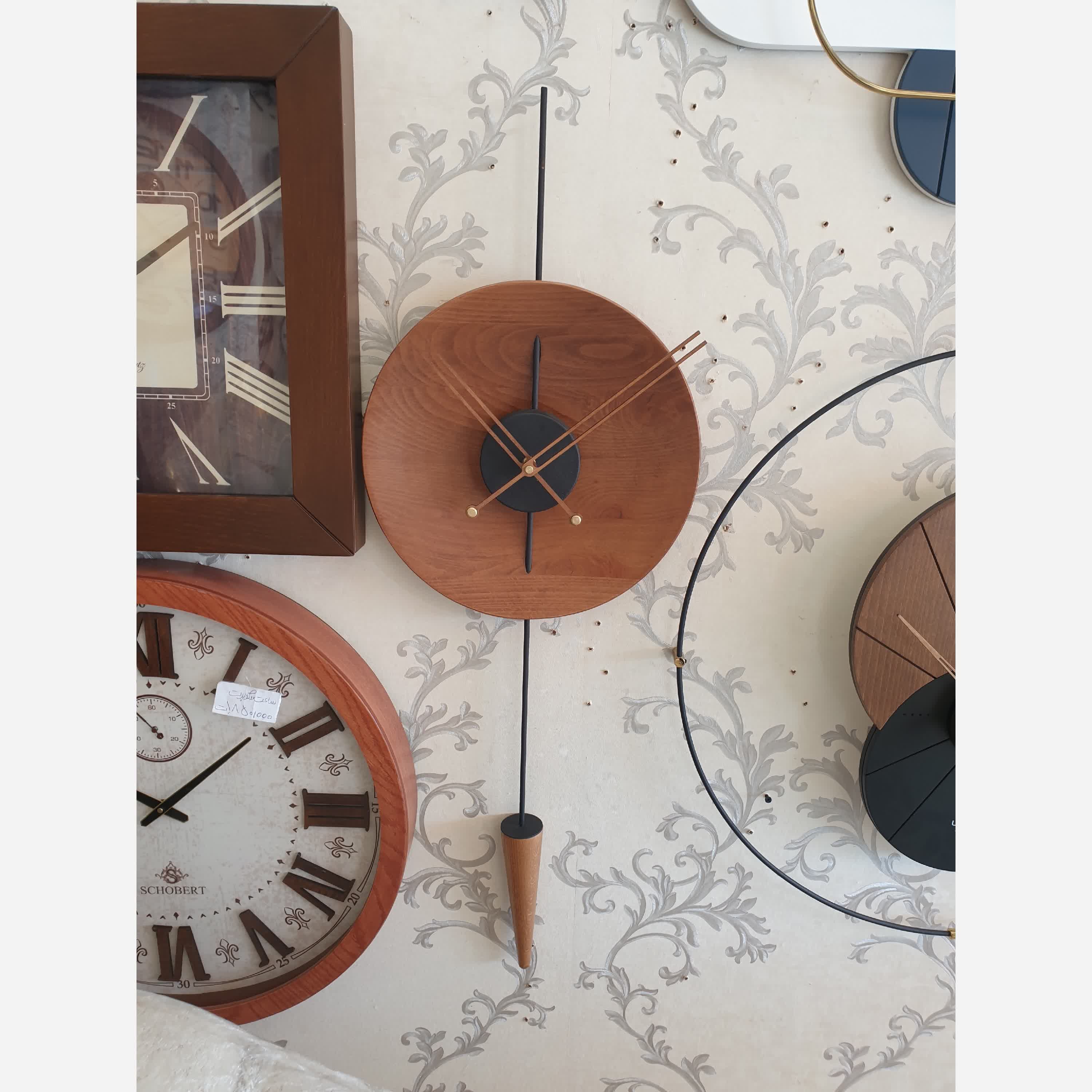 ساعت دیواری چوب و فلز بشقابی لاکوی لوتوس قهوه ای تیره مبلمونسرا مدل 237179