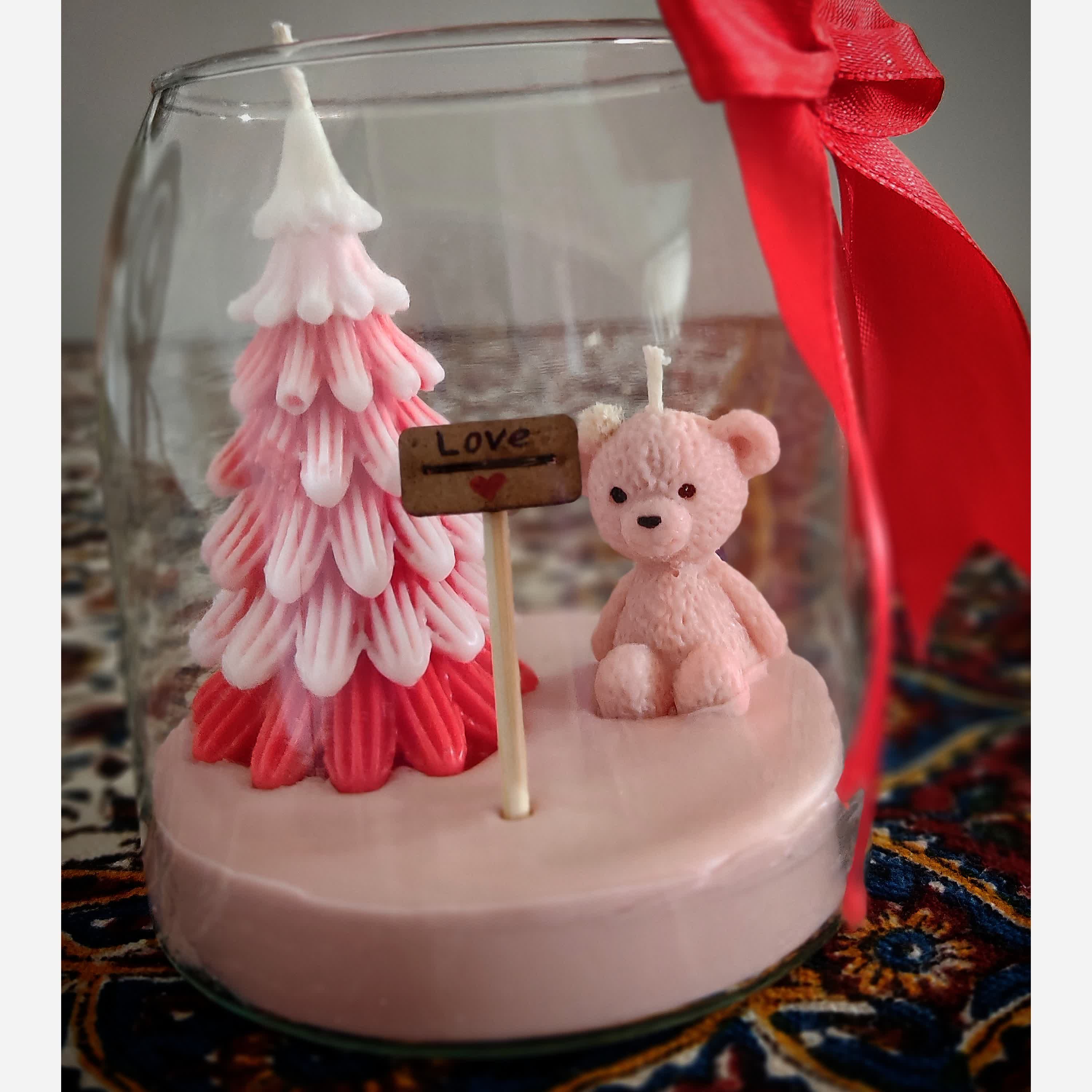 شمع شیشه ای کاج و خرس دکوری و تزیینی