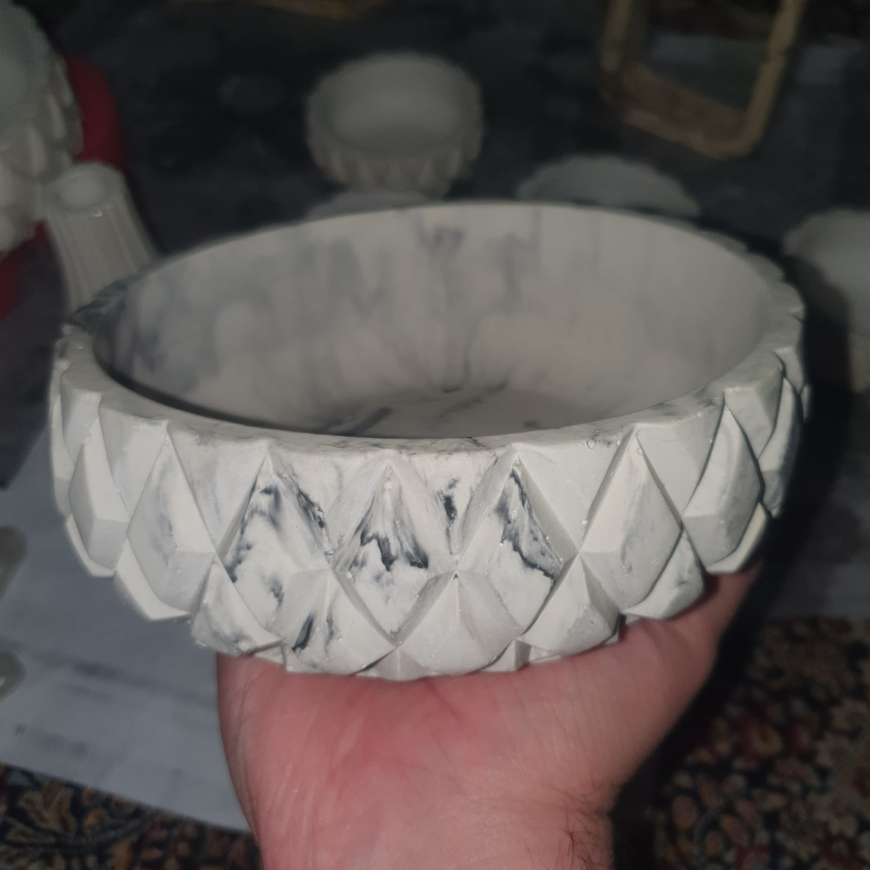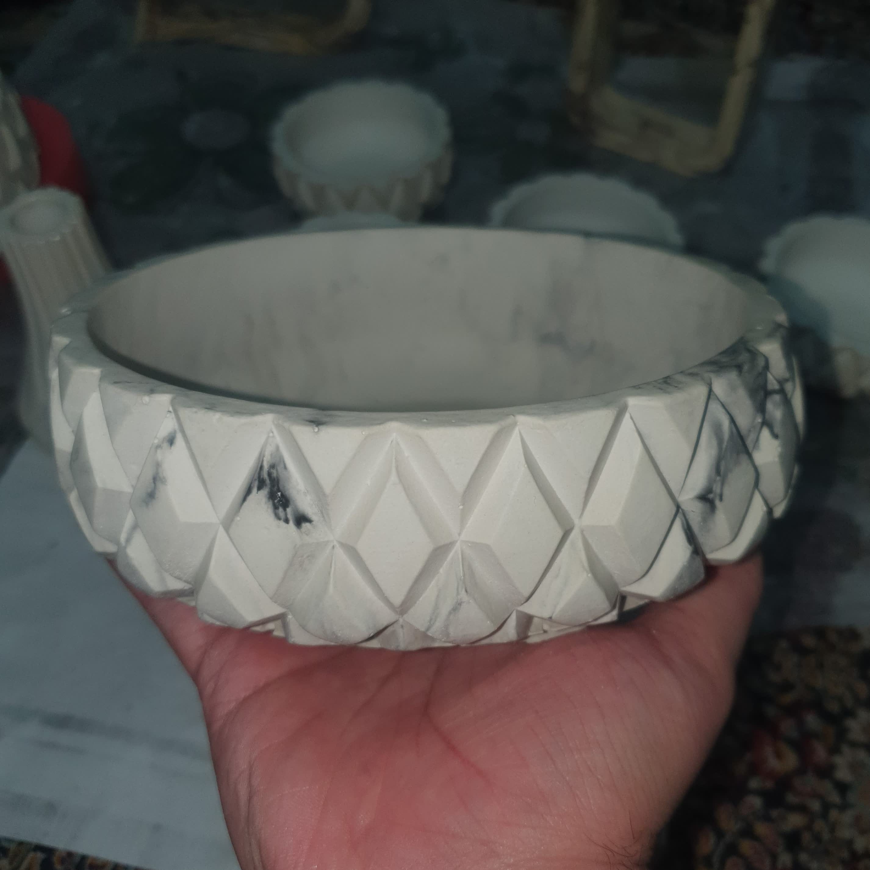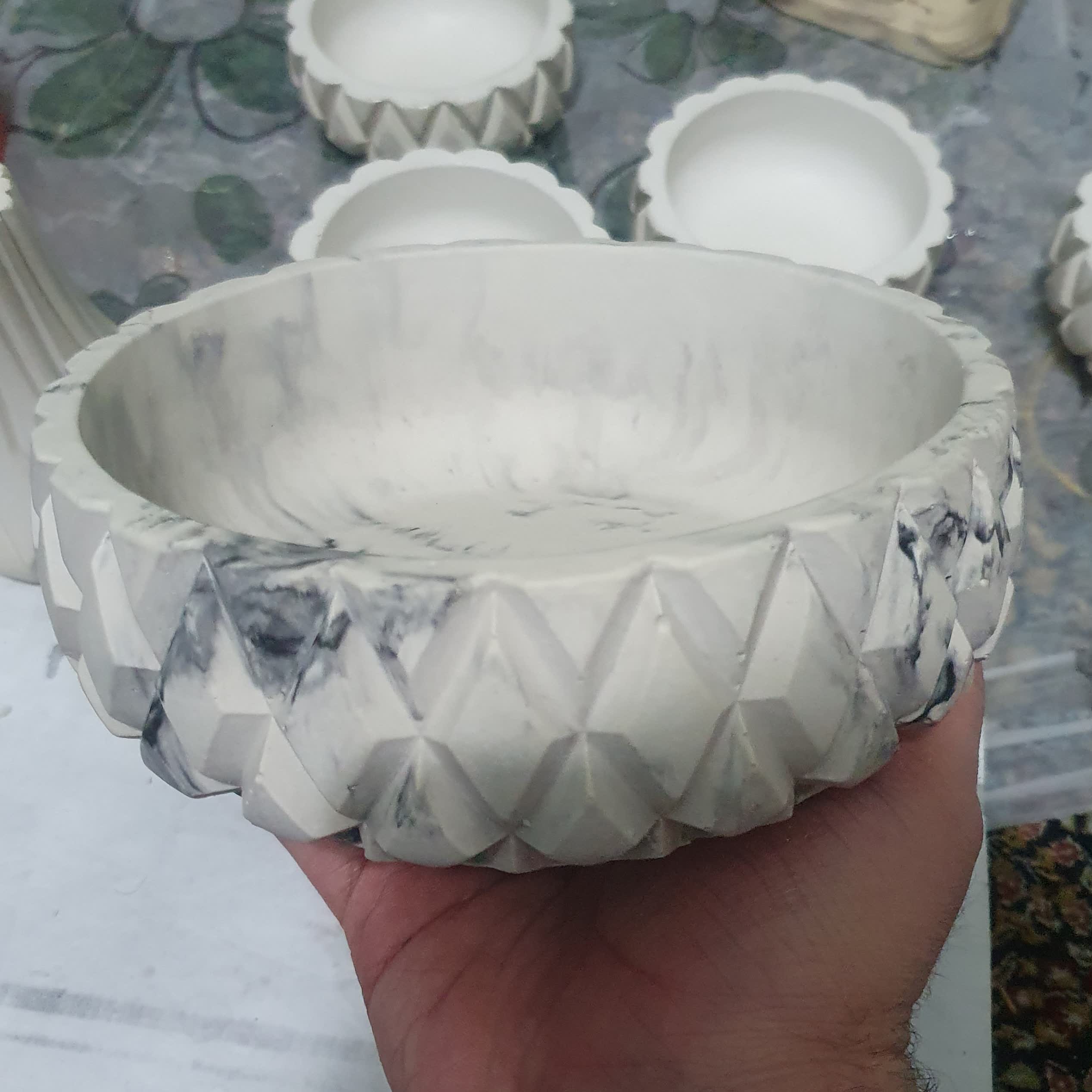 کاسه آجیل خوری بزرگ طرح لوزی سنگ مصنوعی رنگ سفید با رگه های طوسی مبلمونسرا مدل 265704