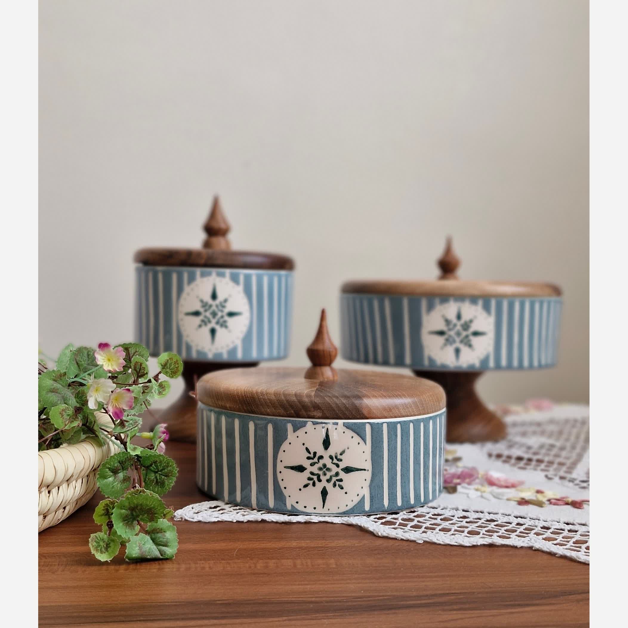 این محصول تماما با دست ساخته و نقاشی شده و دوبار در کوره در دمای 1100درجه پخته شده قابل شستشو ست و رنگش ثابت هست و در ظرف چوب با کیفیت گردو هست