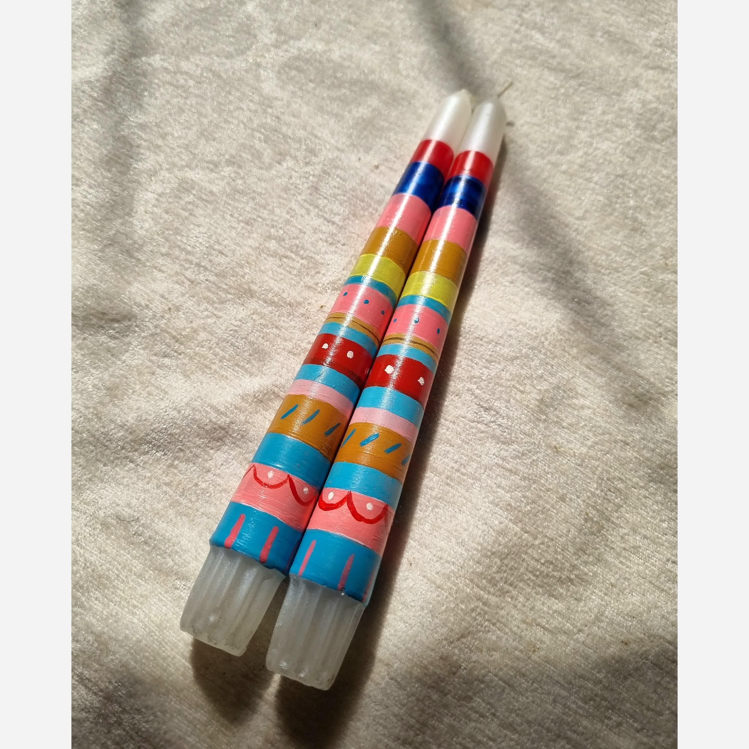 شمع قلمی دوعددی طراحی شده با رنگ اکریلیک طرح ها نقاشی هستن و ترانسفر نیستن. قابل سفارش با رنگ و طرح دلخواه