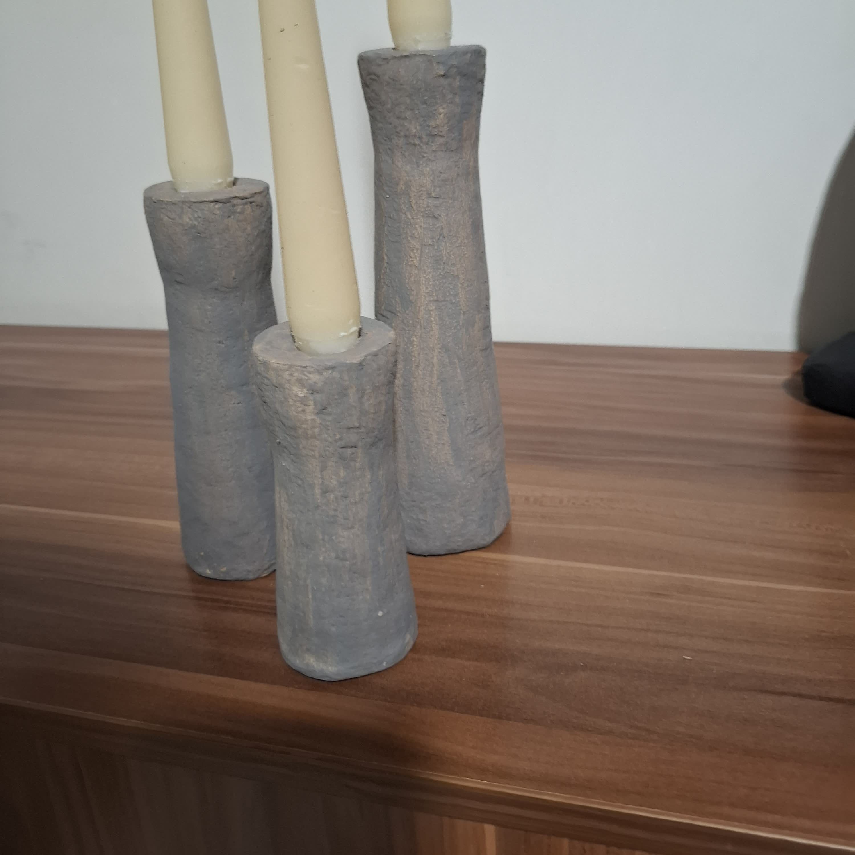 جاشمعی سه تایی صفرتاصد دستساز رنگ پتینه شده طوسی 😍