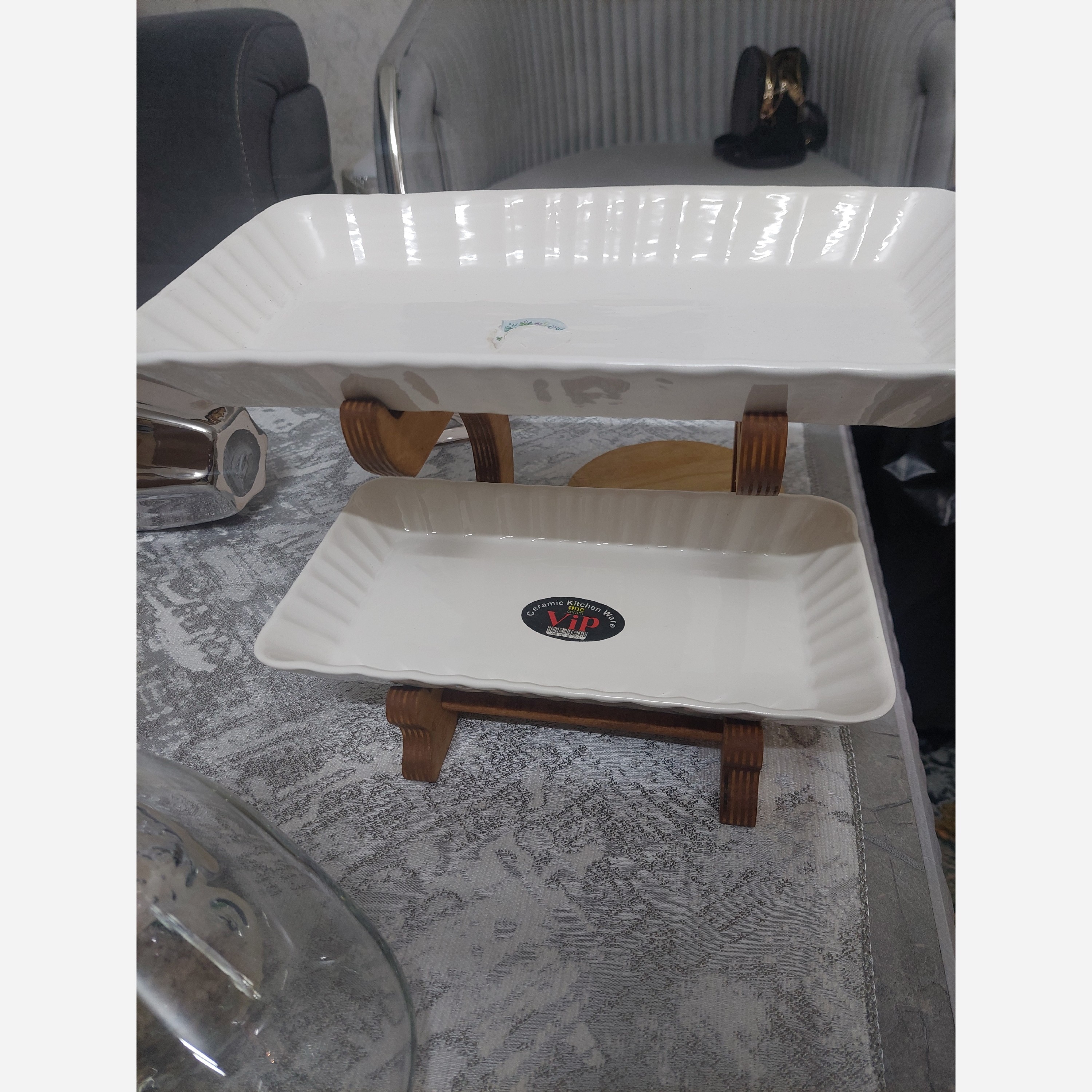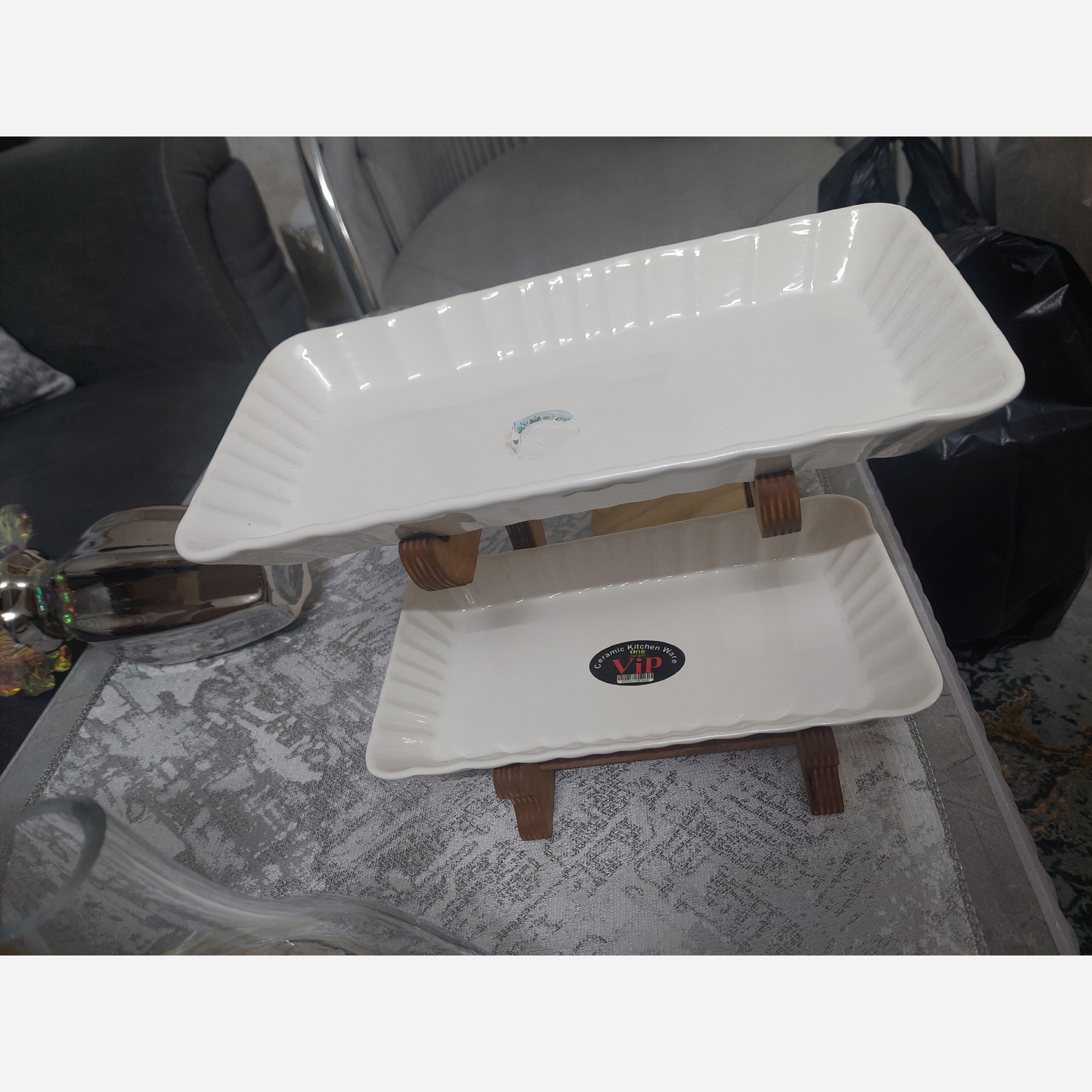 ظروف پذیرایی سرامیکی دوطبقه پایه چوبی مبلمونسرا مدل 276413