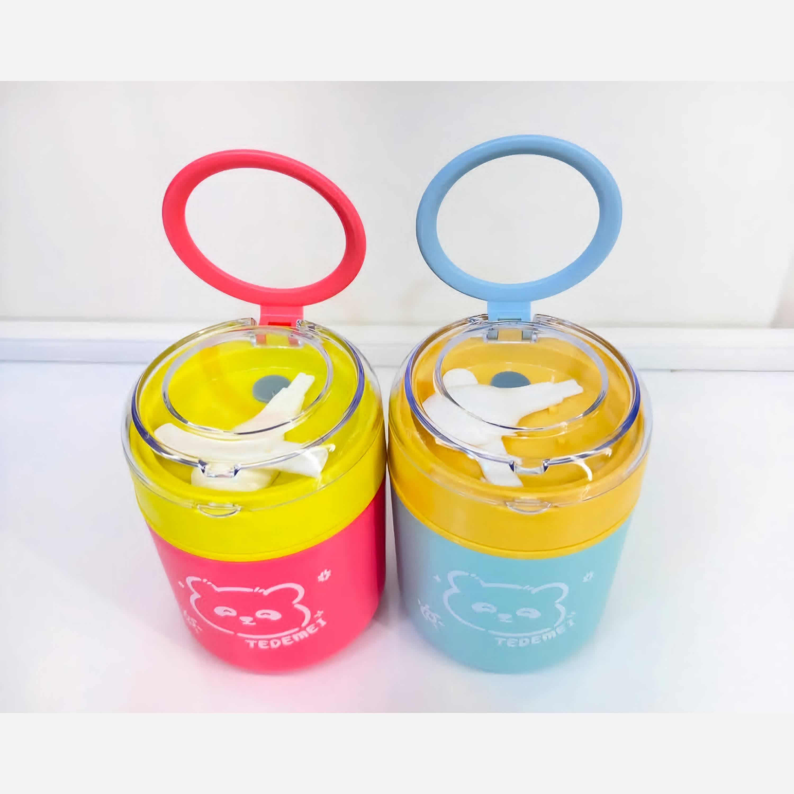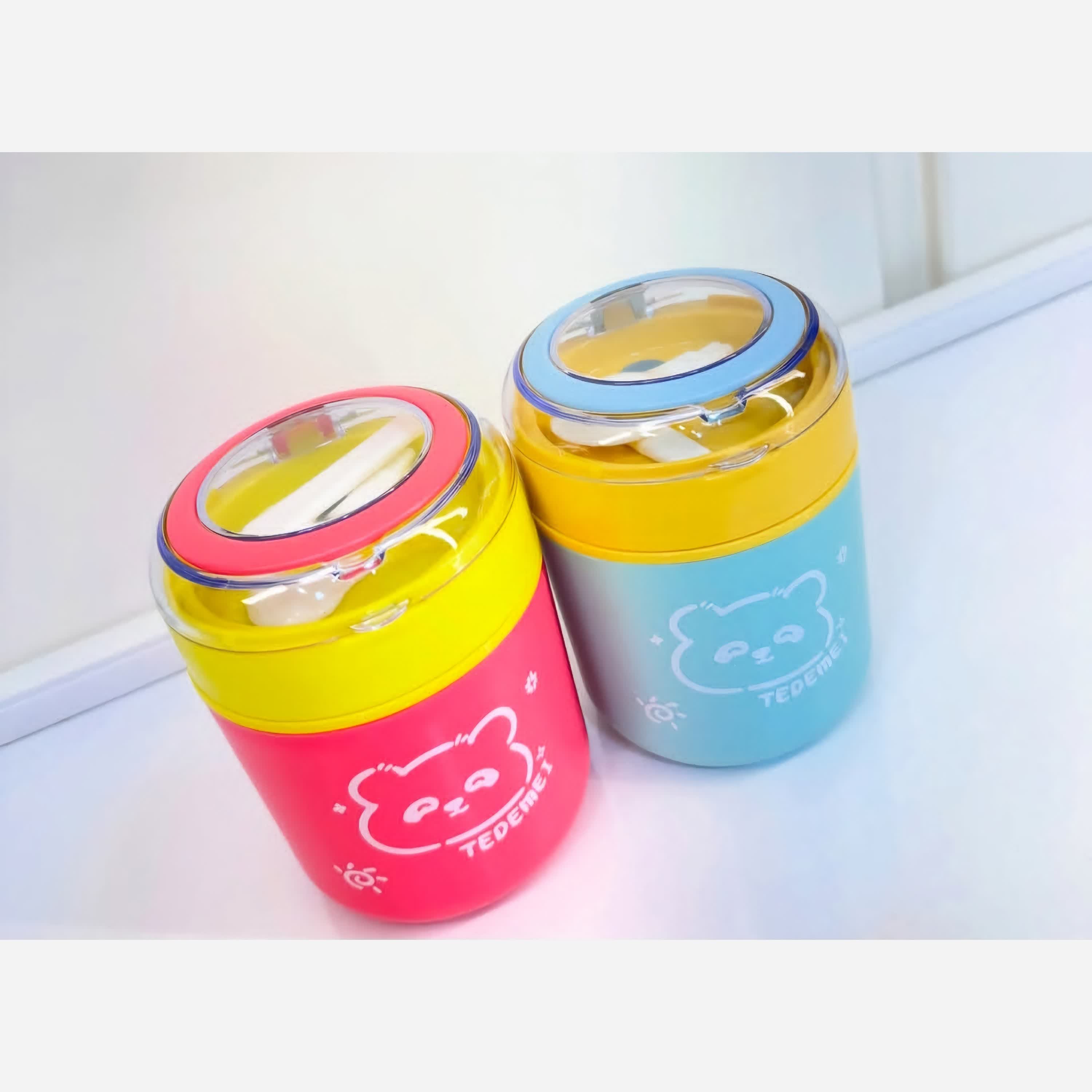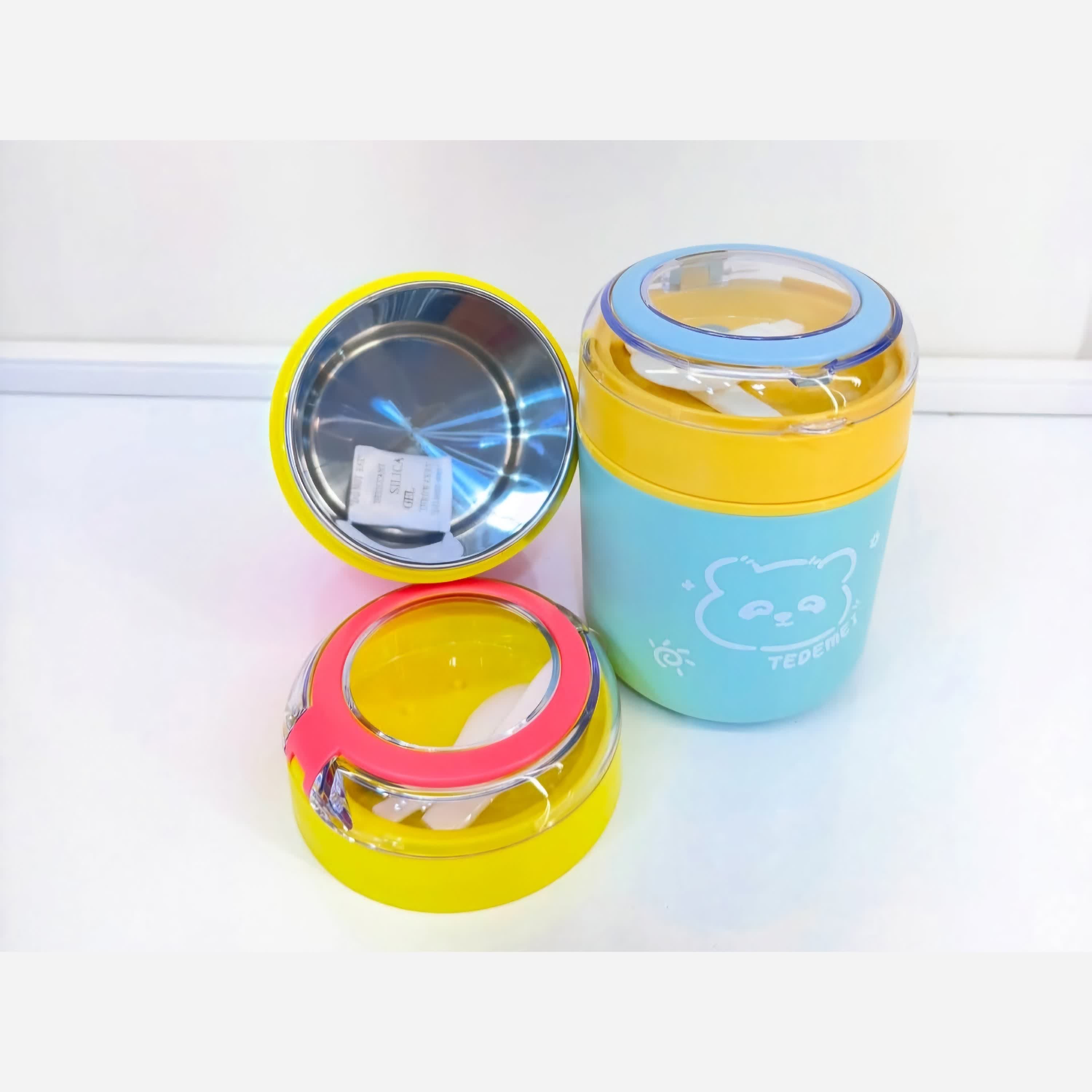 ظرف غذا کودک 530 میل واشردار سوپاپ دار دسته دار قاشق داره دوجداره استیل 304 وارداتی