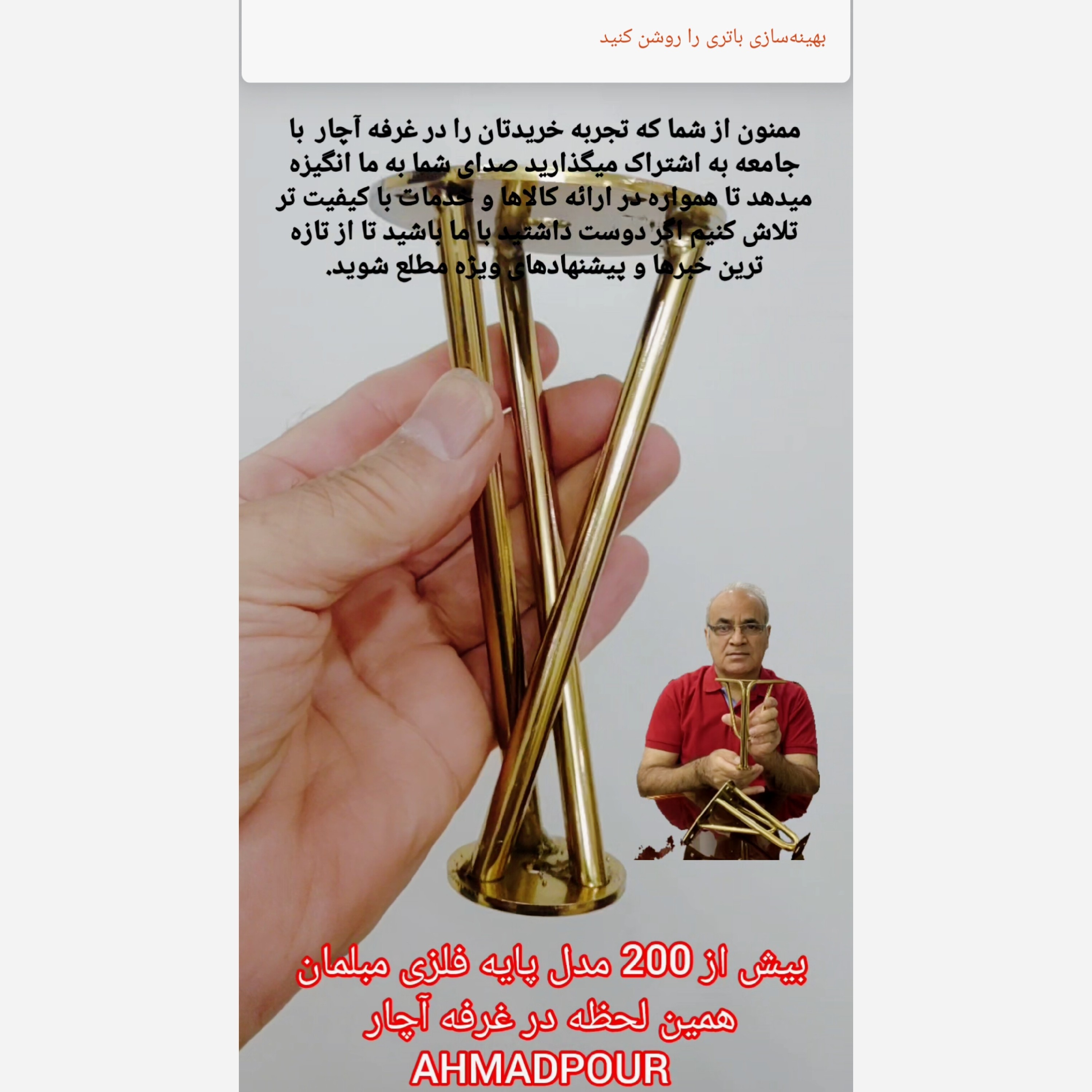 اصالت اعتبار خریدنی نیست باید برای آن زحمتی فراوان کشید. احمدپور 🙏 پایه مدل مارپیچی حداقل سفارش برای ارسال 4 عدد میباشد ارتفاع 15 قطر مسوار 8 میل ضخامت کفی 3 میل ابکاری طلایی فورتیک اعتبار ماگویای همه چیز است یک انتخاب ایده ال ویژگی های منحصر به فرد کیفیت بالا ساخته شده از مواد با دوام و مقاوم مناسب برای استفاده روزمره طراحی مدرن با طراحی های متنوع و زیبا به راحتی با هر نوع دکوراسیونی هماهنگ می شود. نصب آسان نصب سریع و بدون دردسر به شما این امکان را میدهد که به راحتی مبلمان خود را تغییر دهید.