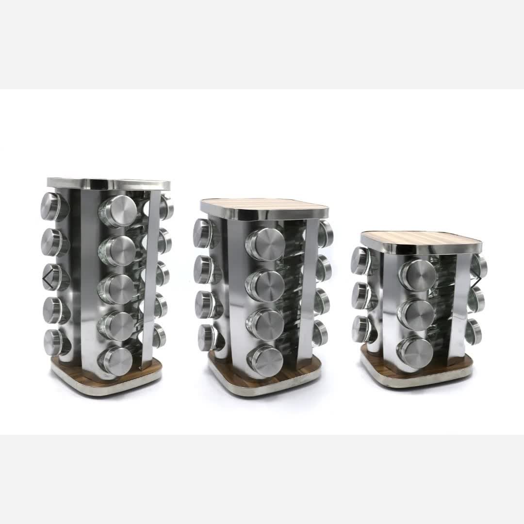 جاادویه ای چرخشی 20 تایی استیل چوبی جا ادویه ای چرخشی استیل چوبی 20 تایی جا ادویه ای گردان 20 تایی استیل چوبی مربع مبلمونسرا مدل 289237