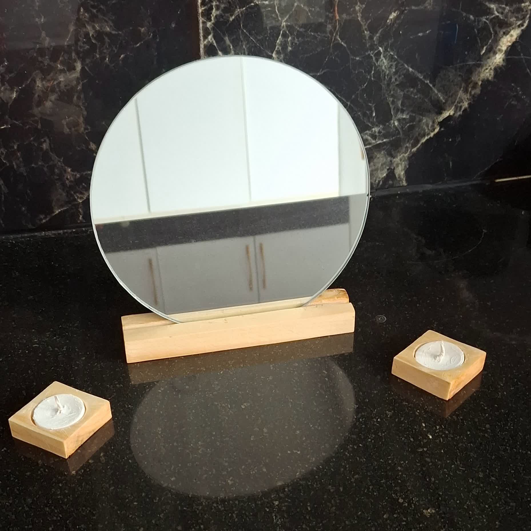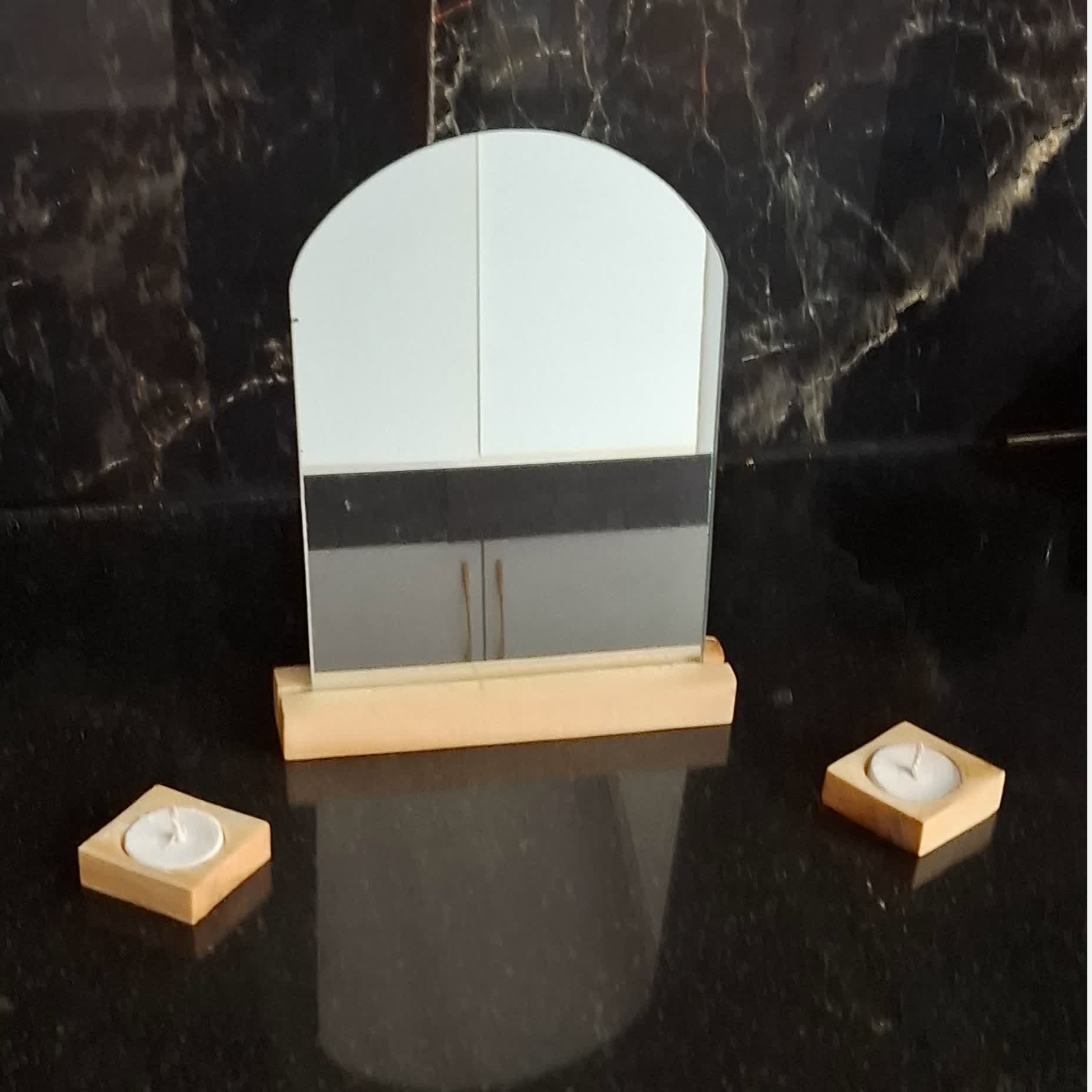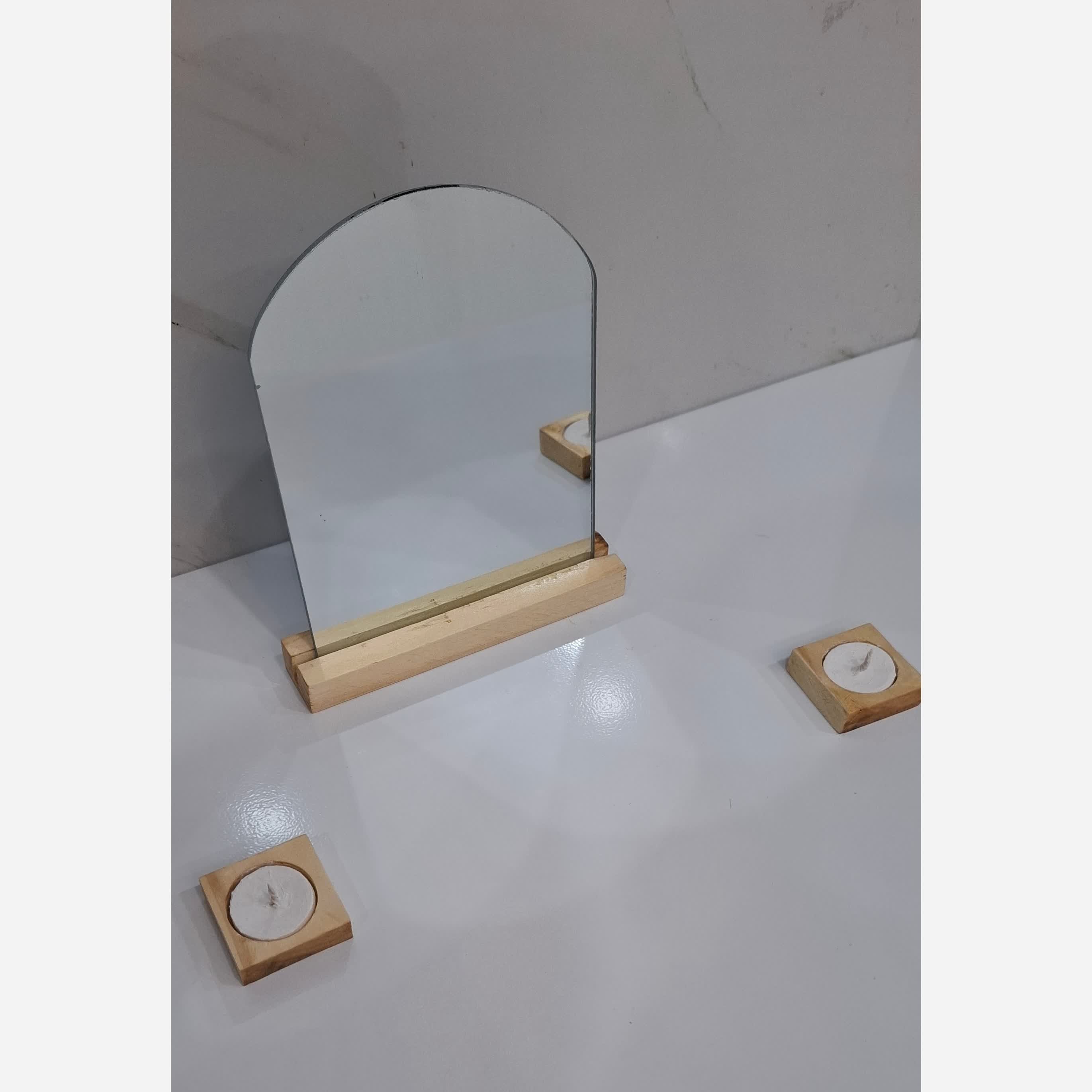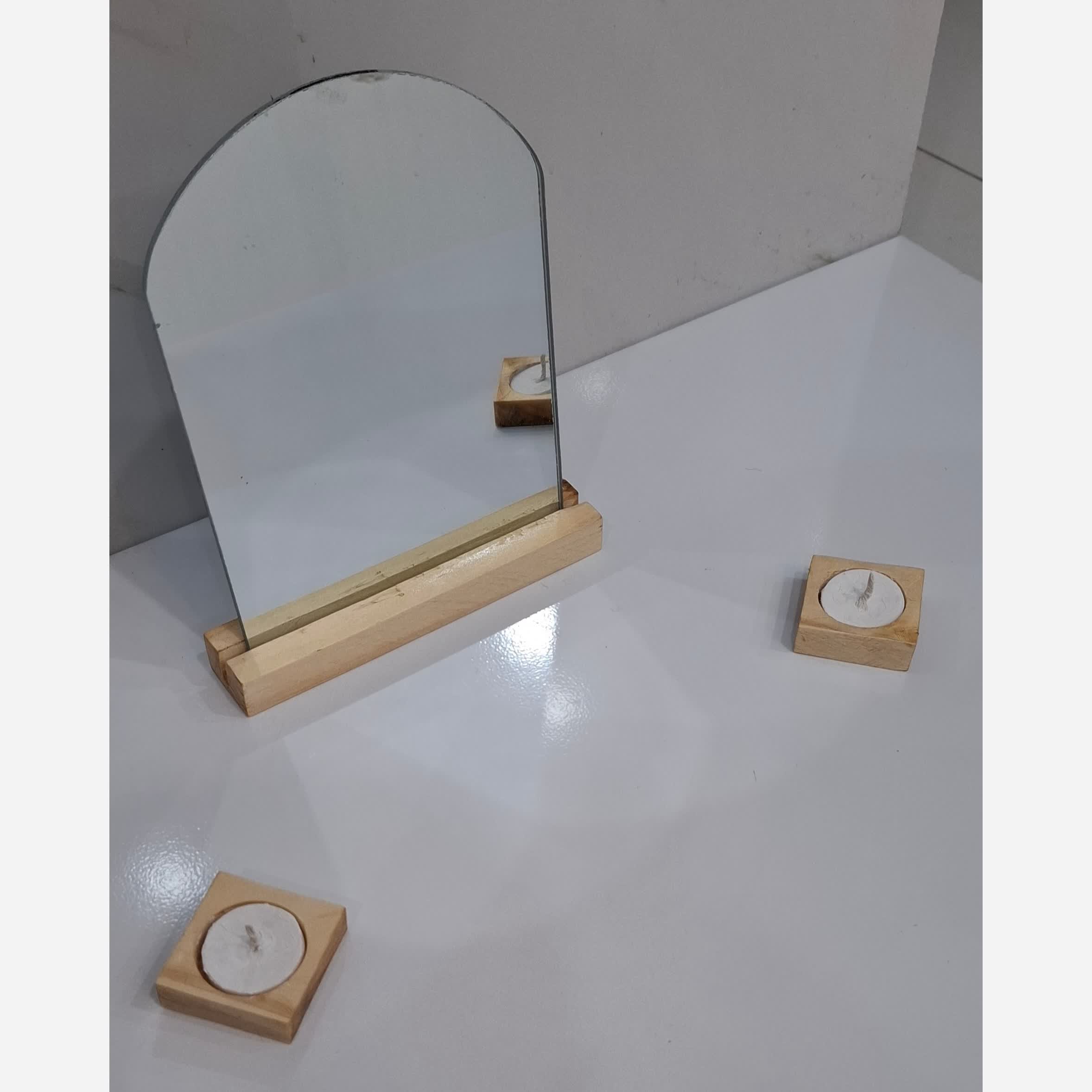 آینه و جا شمعی چوبی عمده برای میز هفت سین سفارش تکی بدون جا شمعی