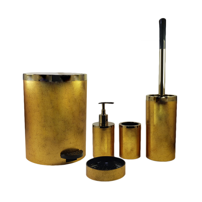سطل زباله ۲۶x۲۰ جای مایع دستشویی ۷x۱۸، برس توالت شوی ۱۰x۴۴ ، جای صابون جامد ۳x۱۱ و لیوان ۷x۱۱
