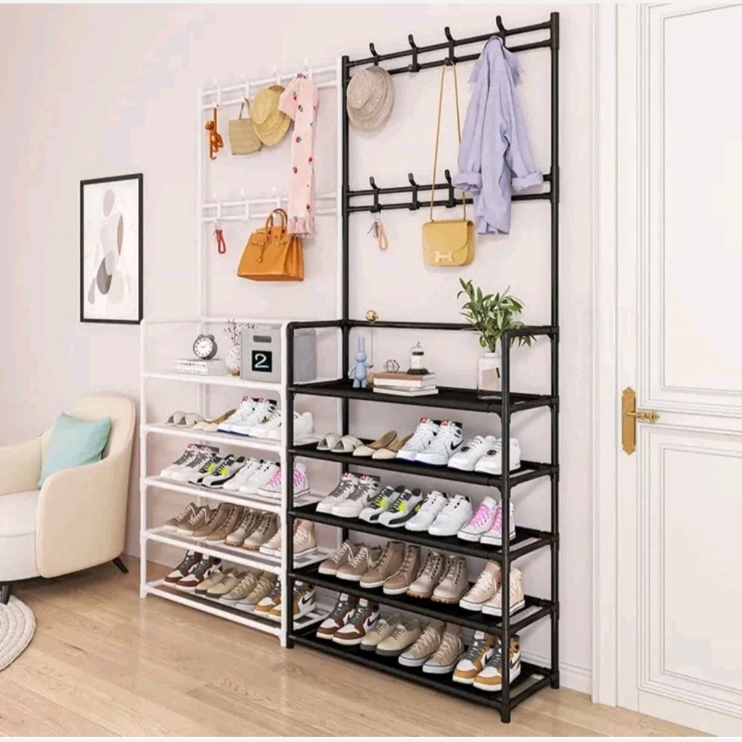 جا کفشی فلزی 4 طبقه بههمراه آویز لباس 8 شاخه در 2 رنگ مشکی و سفید ساخت کشور چین سایز ⬇️ ✅ ارتفاع 153 سانتیمتر ✅ عرض 65 سانتیمتر ✅ عمق 26 سانتیمتر