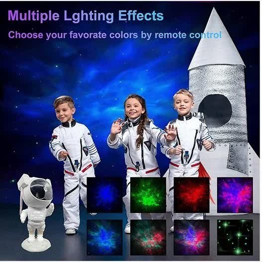 پروژکتور سحابی فضانورد اورجینال نمایش تمام مشخصات: ✅️نوع محصول: رقص نور کهکشانی 7رنگ ✅️ابعاد: 98*117*195 میلی متر ✅️جنس بدنه: پلاستیک ABS ✅️کلید فیزیکی: دارد ✅لیزر: دارد ✅️استاندارد: CE / FCC / RoHS ✅️اقلام همراه: کابل شارژ و دفترچه ✅️تامین انرژی: برق مستقیم 5V ✅طرح ماه و کهکشان: دارد ✅️ریموت کنترل: دارد ✅️محدوده فرکانس ورودی: 50 الی 60 هرتز ✅️شدت جریان ورودی: 1 آمپر در 5 ولت چراغ خواب کهکشانی طرح فضانورد یک چراغ خواب یا نورپردازی با قابلیت پخش افکت تصویر زنده کهکشانی در رنگ های مختلف به همراه لیزر ستاره ای بر روی سقف و دیوار اتاق یا هر سطح دیگری است که به همراه افکت لیزر ستاره ای حس یک سفر کهکشانی را قبل از خواب به شما میدهد . تلفیق همزمان تصویر زنده کهکشانی و لیزر ستاره جذابیت اتاق خواب و خواب شما را چندین برابر میکند . این محصول دارای ریموت کنترل نیز می باشد که میتواند نور پرژکتور یا لیزر را کم یا زیاد و یا برای روشن ماندن محصول تایمر تعریف کنید که سر ساعت مشخص شده محصول خاموش بشود .