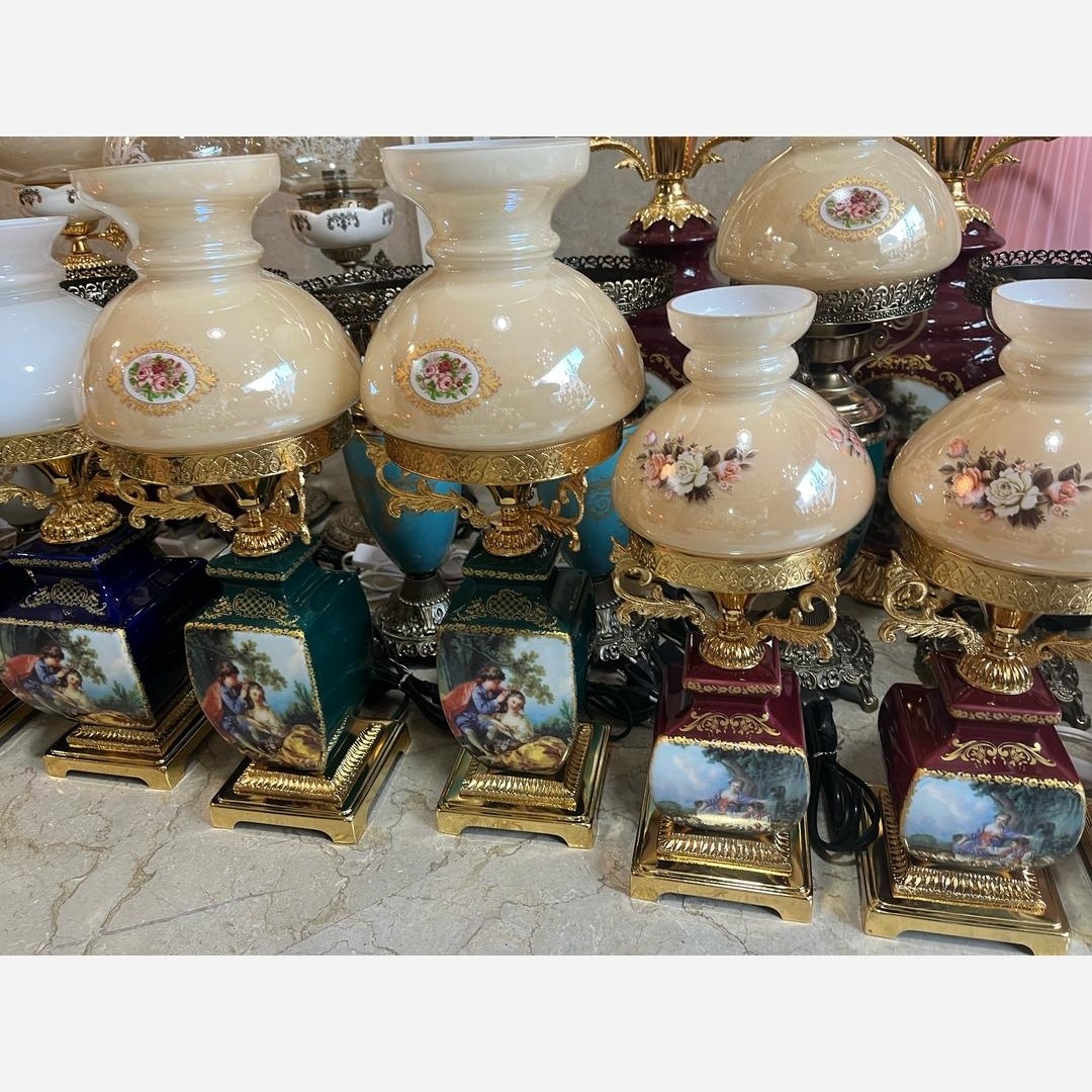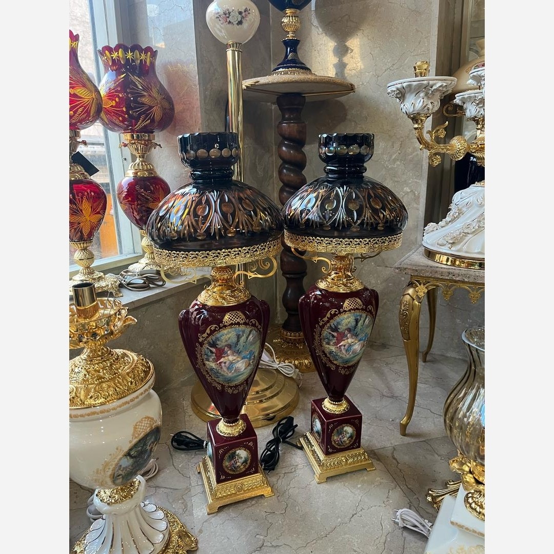 شمعدان آباژور رومیزی لمپا لنتر چینی برنز چراغ حباب دار محرمات چراغ نفتی برنزی برنجی کریستال تراش دار طلایی مبلمونسرا مدل 231937