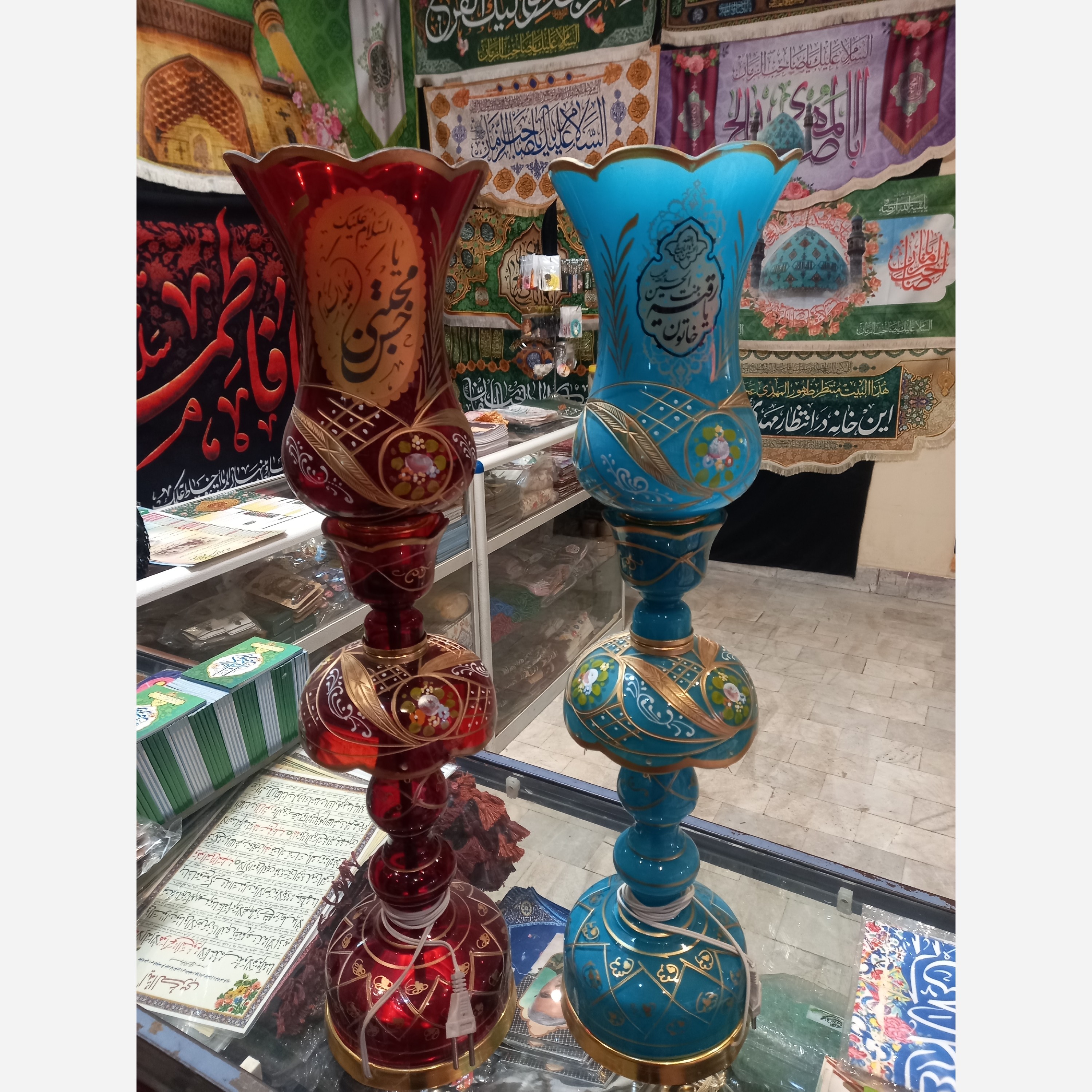 ✅نام محصول:شمعدان تکی برقی 65سانتی باتخفیف ویژه ولادت امام حسن آبی:یکطرف یا صاحب الزمان، یکطرف رقیه بنت الحسین قرمز:یکطرف حضرت فاطمه، یکطرف امام حسن