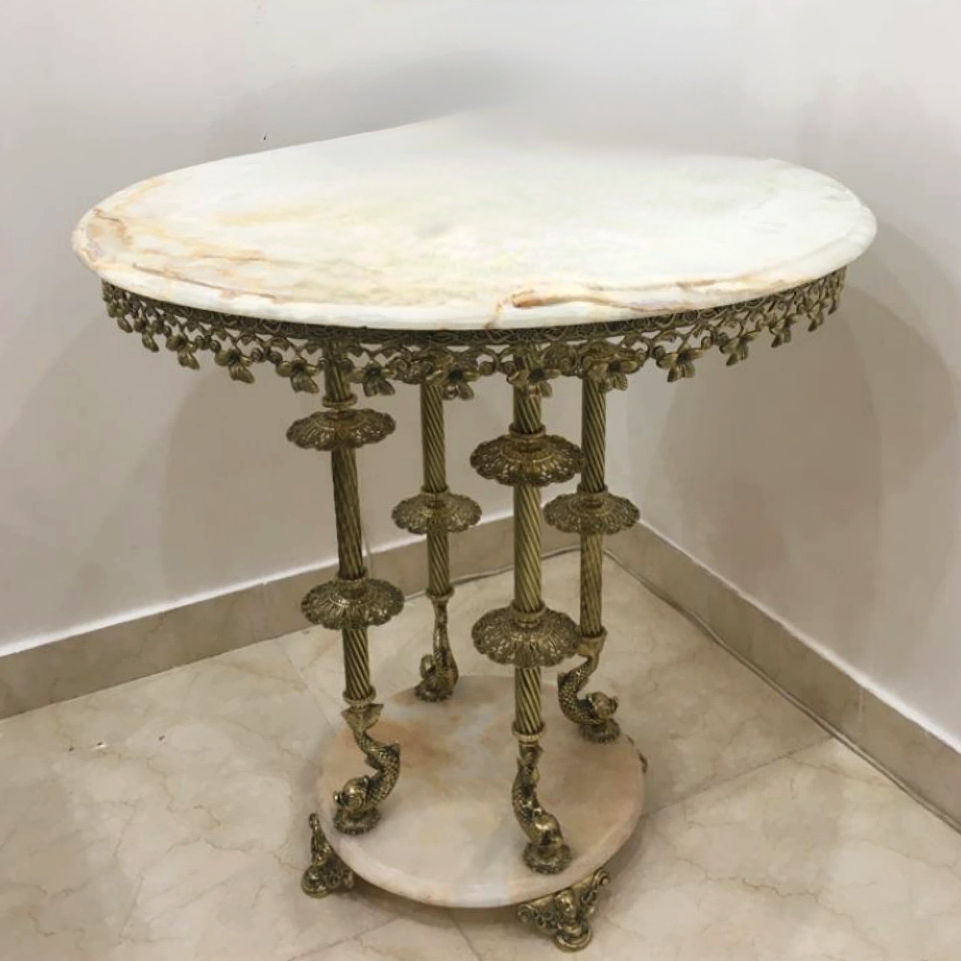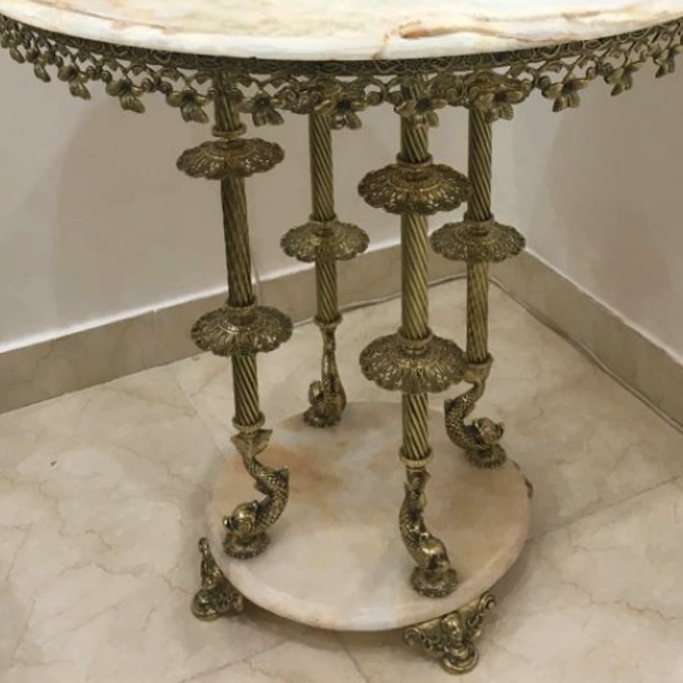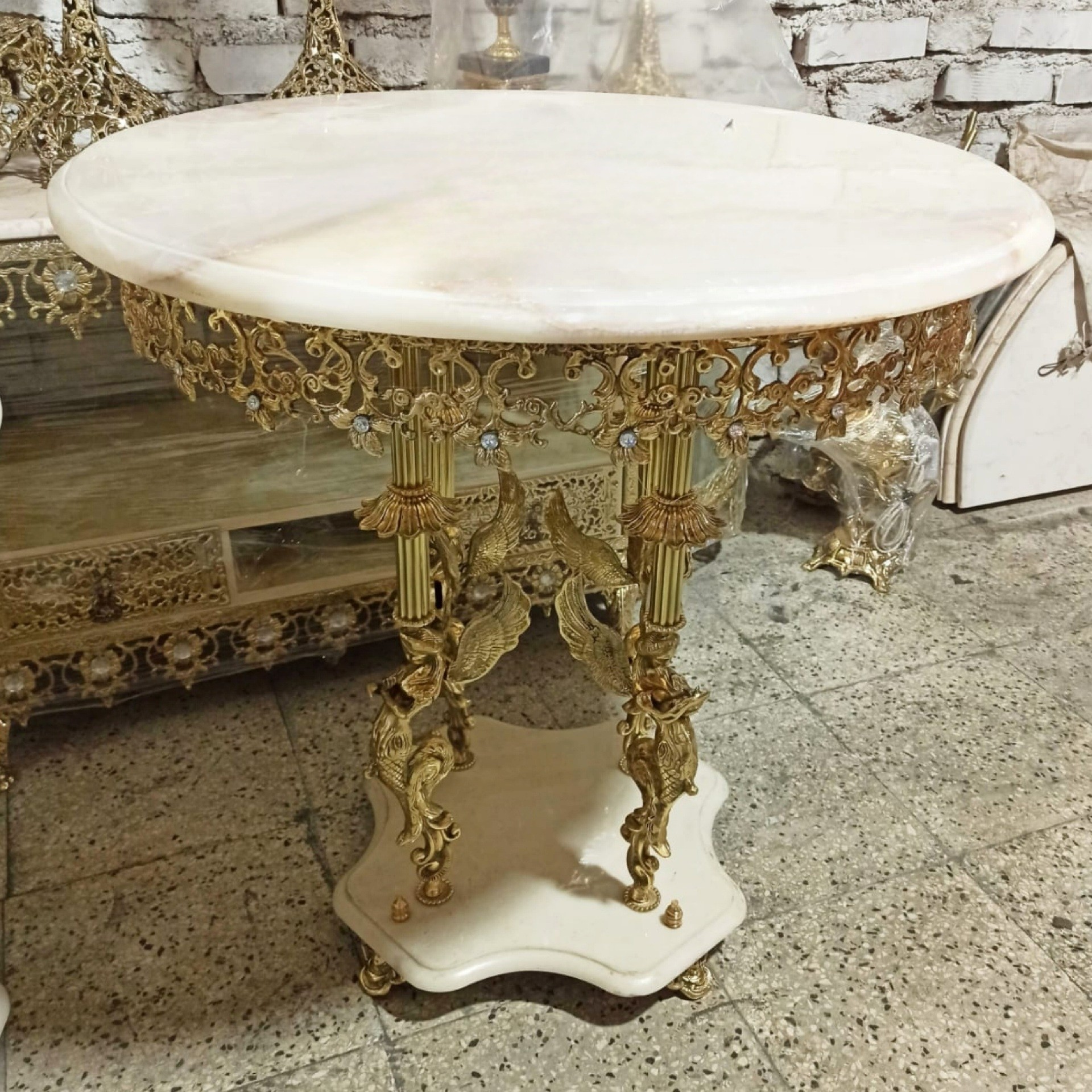 میز خاطره ناهار خوری برنز رویه سنگ مرمر درجه یک پایه ماهی سایز بزرگ گل میز مبلمونسرا مدل 223887