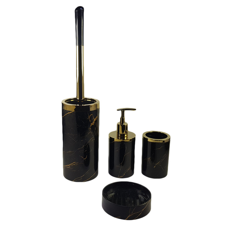 سطل زباله ۲۶x۲۰ جای مایع دستشویی ۷x۱۸، برس توالت شوی ۱۰x۴۴ ، جای صابون جامد ۳x۱۱ و لیوان ۷x۱۱