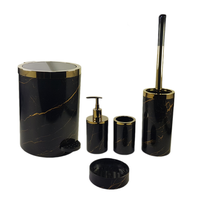 ست 5 تکه سرویس بهداشتی ،کمجا شیک با رنگ ثابت دربرابر آب و رطوبت دارای بهترین متریال پلاستیک فشرده شامل بالاترین تنوع طرح و رنگ آمیزی خاص، برای مشکل پسندان .که شامل سطل زباله ،جای مایع دستشویی، برس توالت شوی، جای صابون جامد و لیوان میباشد .