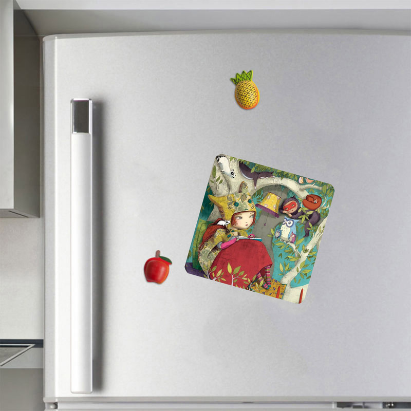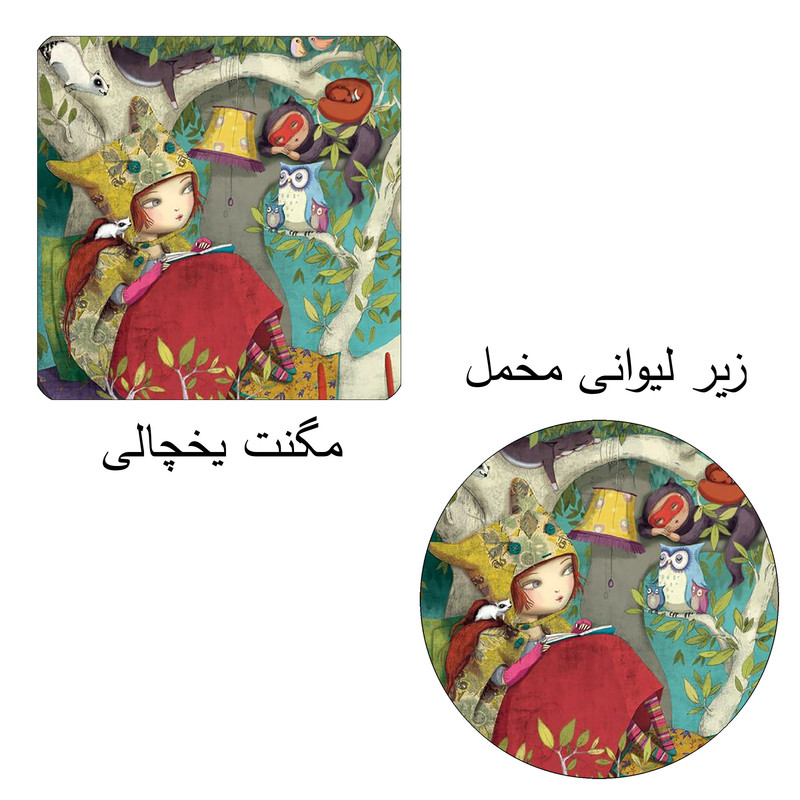 مگنت طرح دختر کتابخوان و حیوانات جنگل کد M1 به همراه زیر لیوانی مبلمونسرا مدل 260002