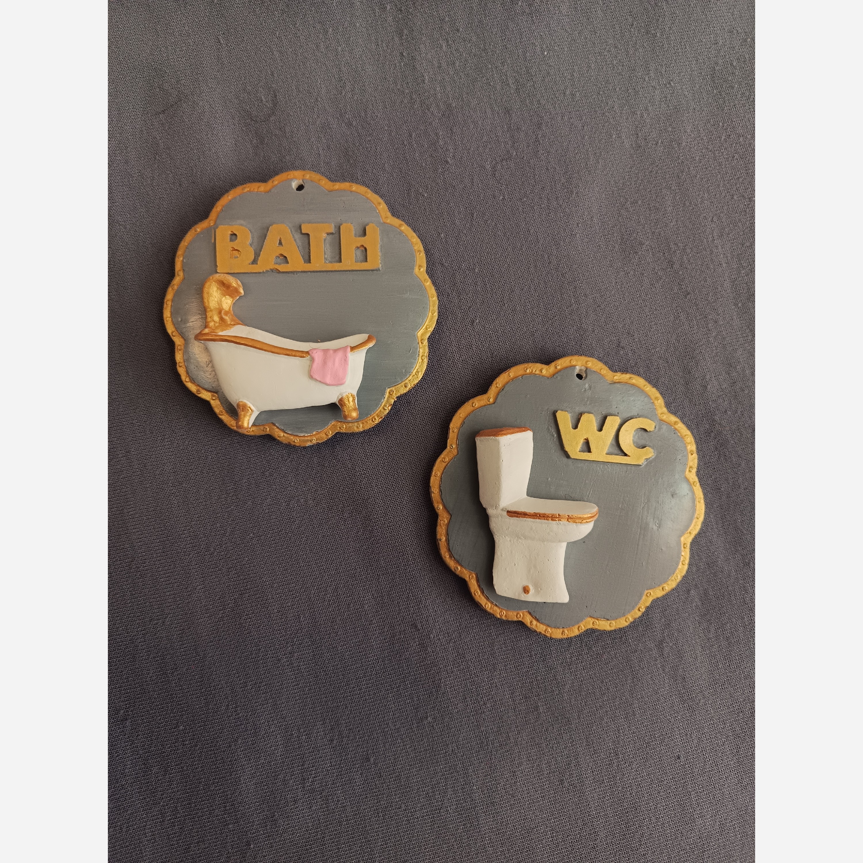 باسلام نشانگر جفتی سرویس بهداشتی و حمام با رنگ های متنوع جنس سرامیکی پشت چسب دوطرفه برای نصب روی در و دیوار حمام یا دستشویی این مدل سایز کوچکمون هست سایز بزرگ نشانگر هم در غرفه موجوده در صورت نیاز حتما محصولات رو چک کنید با سپاس
