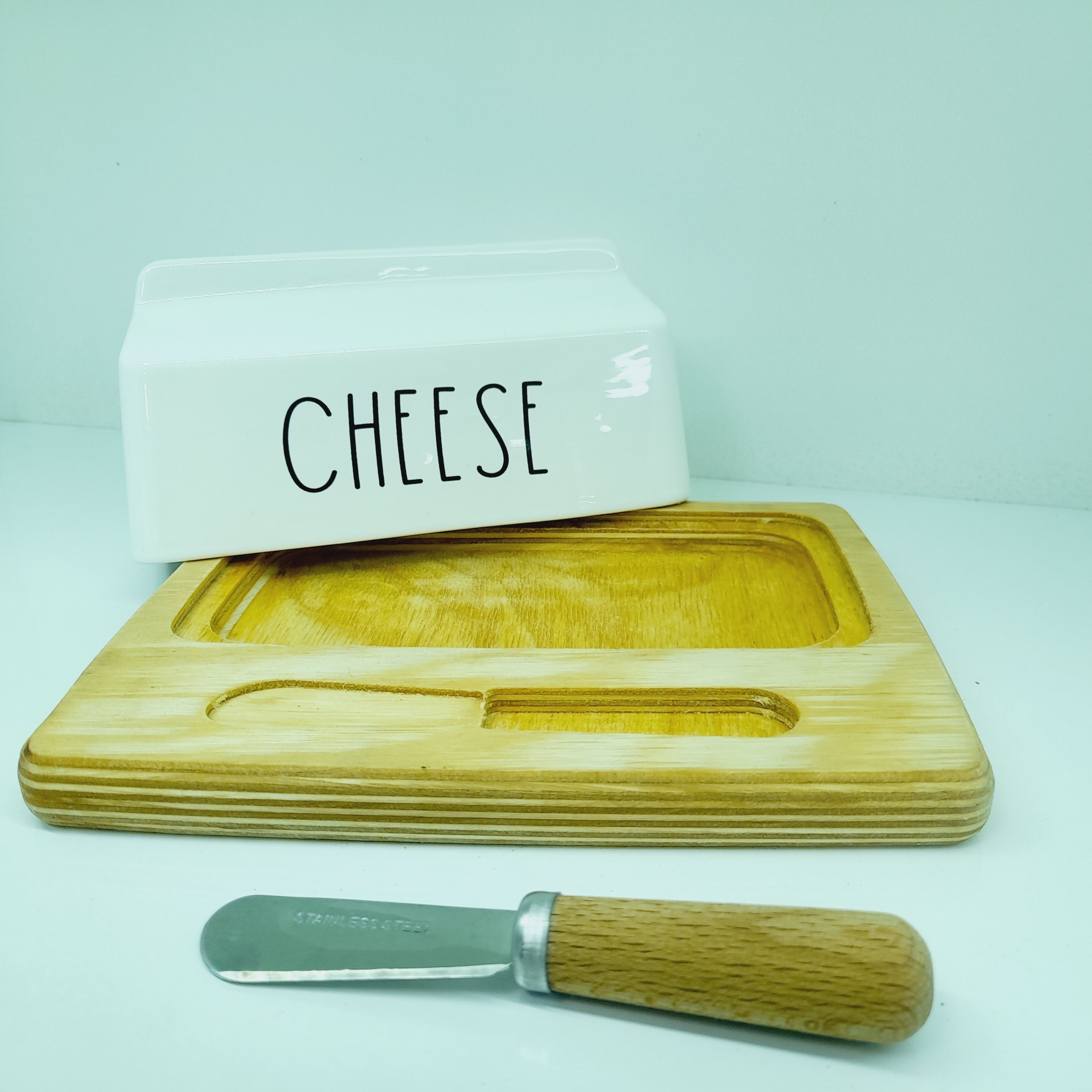 کره خوری زیره چوبی سرامیکی همراه کارد دسته چوبی
