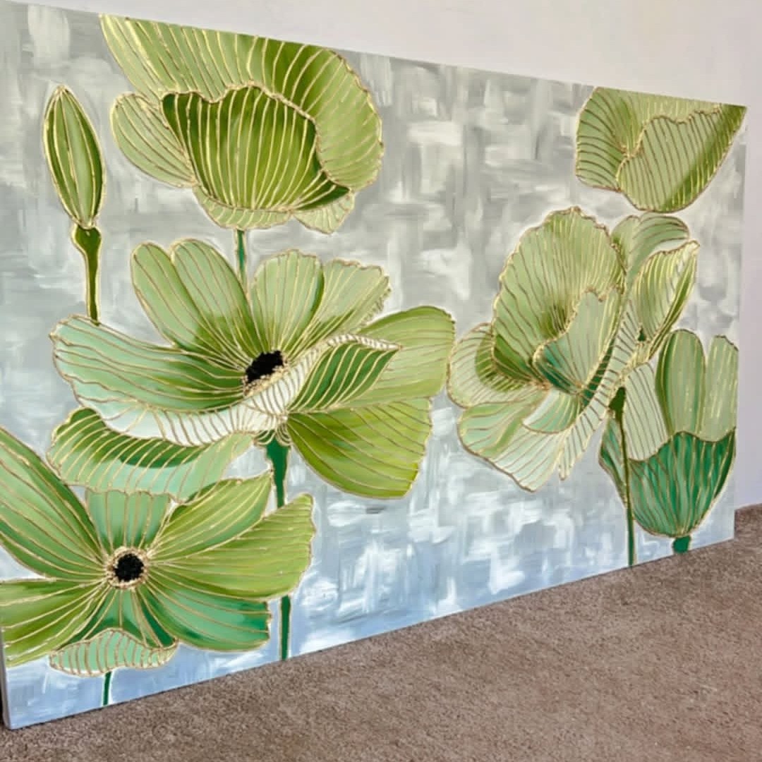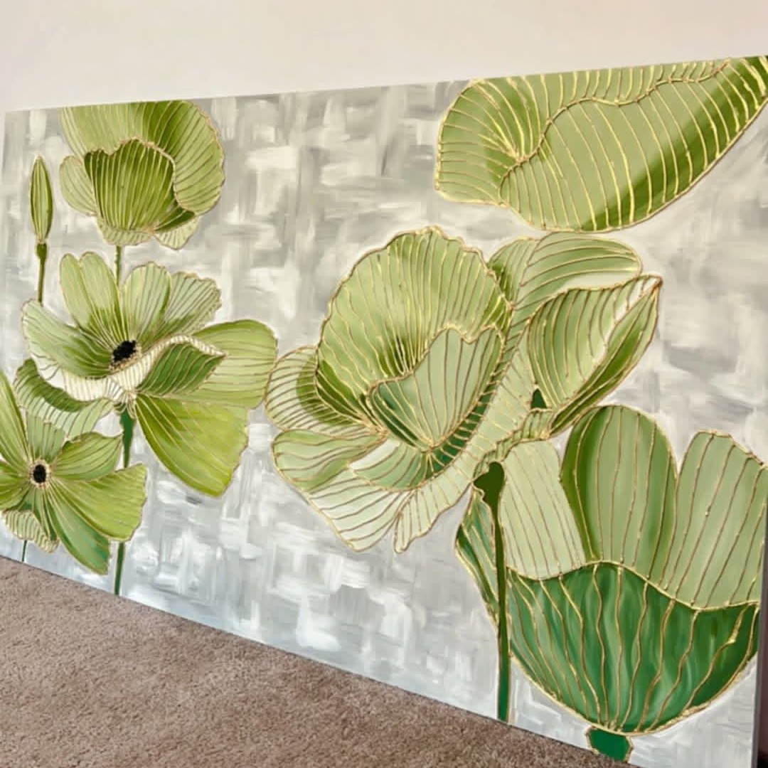 تابلو دکوراتیو گل برجسته سبز مینیمال خاص ترند مدرنهدیه مبلمونسرا مدل 268536