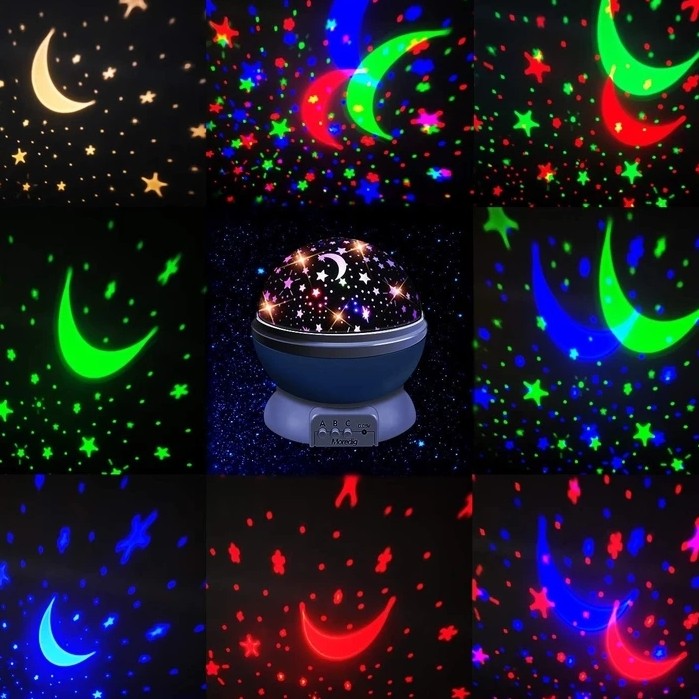 با پروژکتور کهکشانی، آسمان - اتاق خود را با ستاره ها و نور ماه پر کنید، به طوری که احساس می کنید زیر ستاره ها دراز کشیده اید! چرخش، با گزینه چند رنگ - بی صدا می چرخد، گزینه رنگ شامل سفید گرم، آبی، قرمز و سبز است. می تواند یک نور یا چند نور را به طور همزمان انتخاب کند. لامپ نوآورانه پرقدرت - با ماندگاری طولانی، می تواند تا 3 متر پخش شود. پروژه های کریستالی شفاف و ماندگارتر از هر برند دیگری از چراغ های شب ستاره ای است. این چراغ خواب جذاب و قابل چرخیدن به صورت 360درجه ای ، برای فضای اتاق شما با ایجاد تصاویر خارق العاده از ماه و ستاره یک کهکشان واقعی ایجاد میکند. با زدن کلید های روی آن رنگ آن تغییر کرده یا رنگ ها را باهم می توانید ترکیب کنید و همچنین با کلیدهای روی این چراغ می توانید حالت چرخشی یا حالت ثابت برای آن انتخاب کنید. اگر درپوش سفید چراغ روی آن باشد تصاویر روی دیوارهای پخش نمیشوند ، ولی اگر درپوش سفید را بردارید و تلق مشکی زیر آن را خارج کرده و روی چراغ قرار دهید تصاویر به طرز باور نکردنی و قابل توجهی روی تمام دیوارها و سقف پخش می شوند. این چراغ یک هدیه ی جذاب برای کودک شما یا حتی قابل استفاده در جشن ها و مهمانی های شما می باشد. این چراغ خواب هم با کابل usb داخل جعبه کار میکند و هم با باتری کیفیت عالی