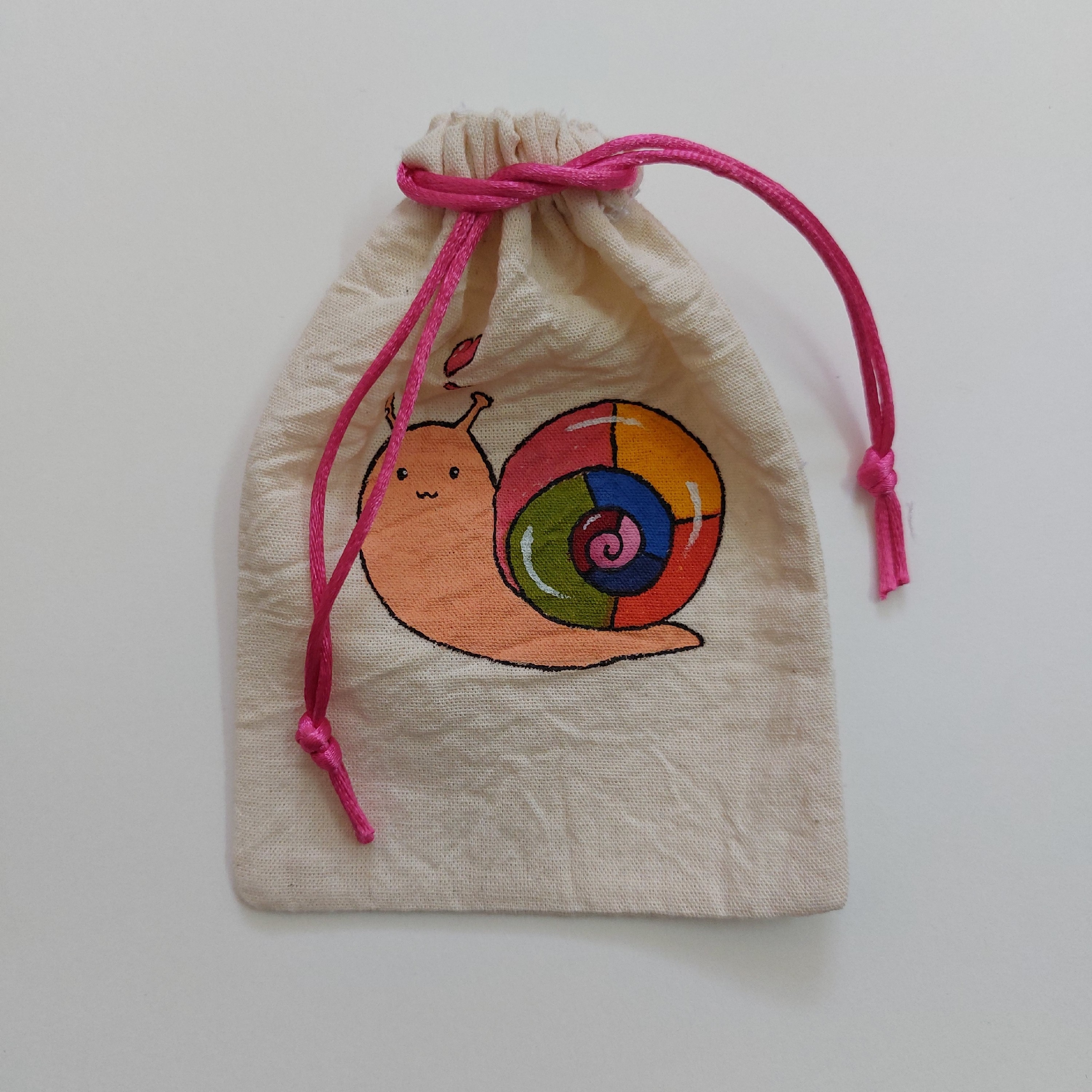 نقاشی روی کیسه ی پارچه ای با رنگ مخصوص پارچه قابل شستو با آب سرد سایز 14در10 سانتی متر کیسه های سایز کوچیک رو میتونید برای گیف جشن عروسی یا تولد و جای تنقلات خوراکی و شکلات و زیورآلات و ... استفاده کنید. ثبت سفارش با طرح و اندازه دلخواهتون پیام بدهید.