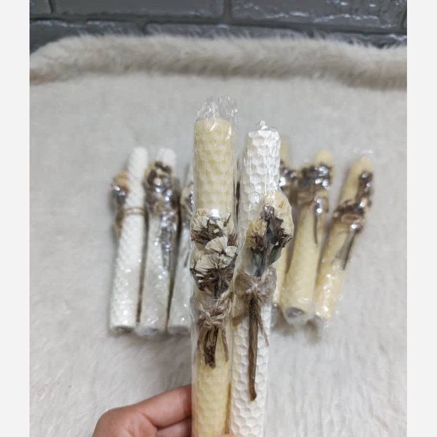 شمع موم عسل تزئین شده با گل خشک مبلمونسرا مدل 286147