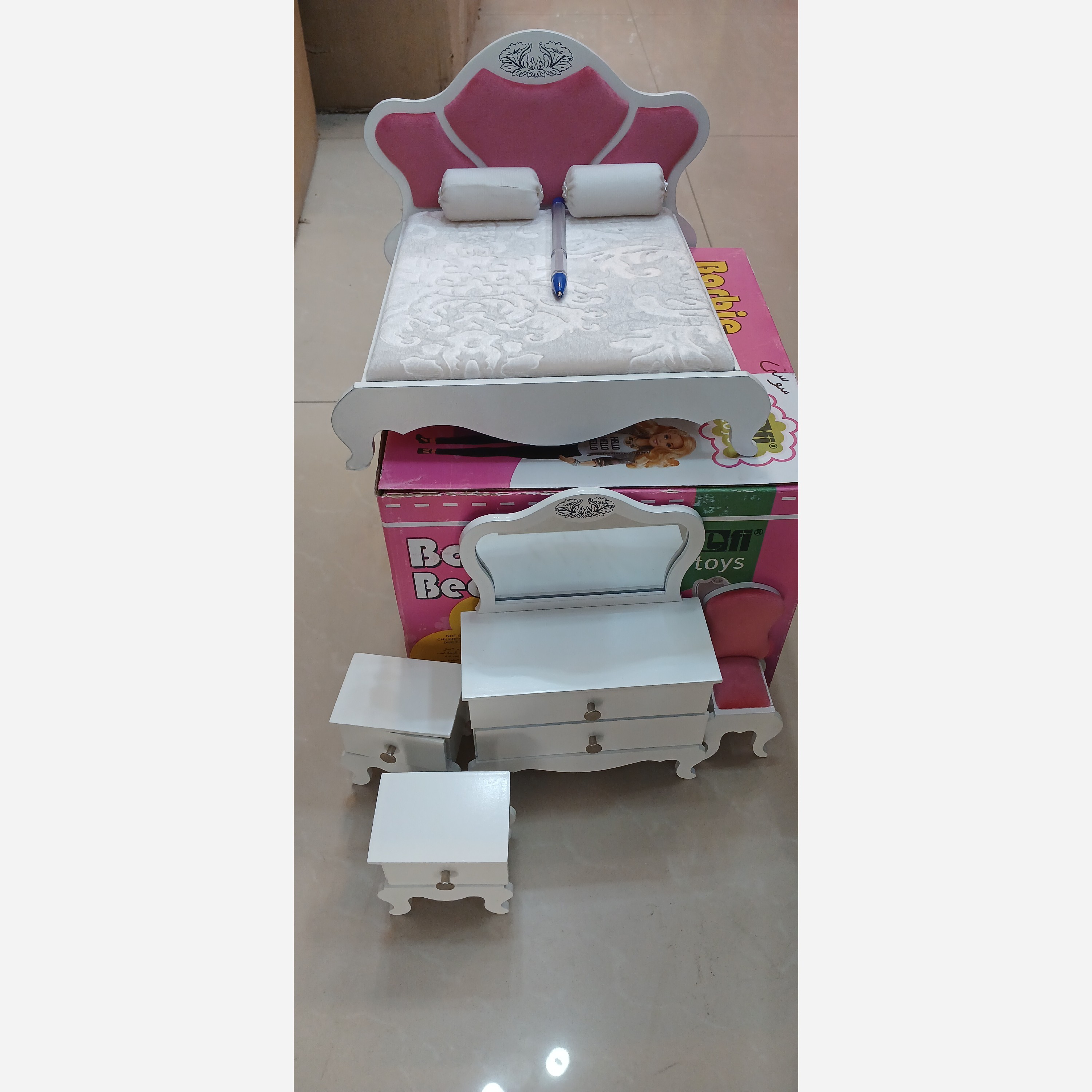 ست تخت خواب و آینه کنسول چوبی باربی مبلمونسرا مدل 228828