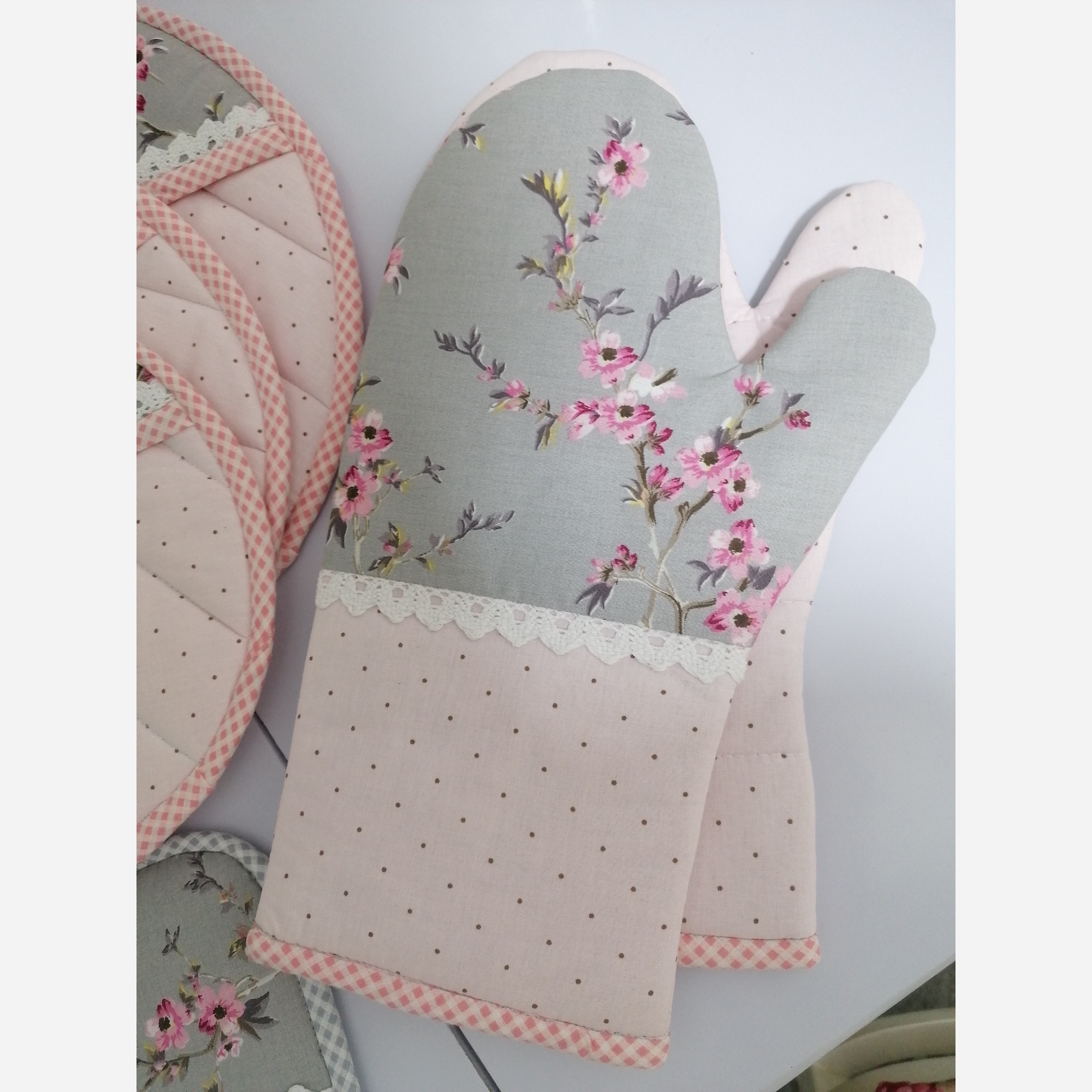ست 3 عددی دمکنی ماه یک جفت دستکش فر یک جفت دستگیره جیب دار مربعی