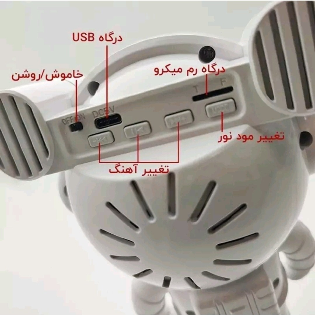 چراغ خواب کهکشانی طرح آدم فضایی اسپیکر دار رقص نور دارای ریموت مبلمونسرا مدل 232511