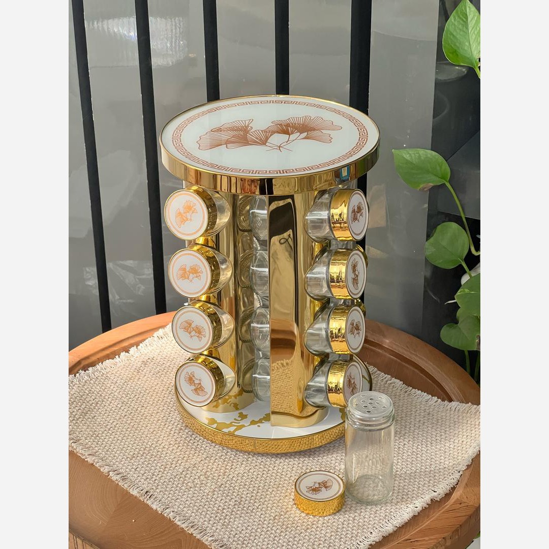 جاادویه چرخشی وارداتی 16تایی جاادویه چرخشی طرح گل16تایی جنس استند:استیل طلایی رنگ ثابت جاادویه شیشه ای 🍀سفید طلایی