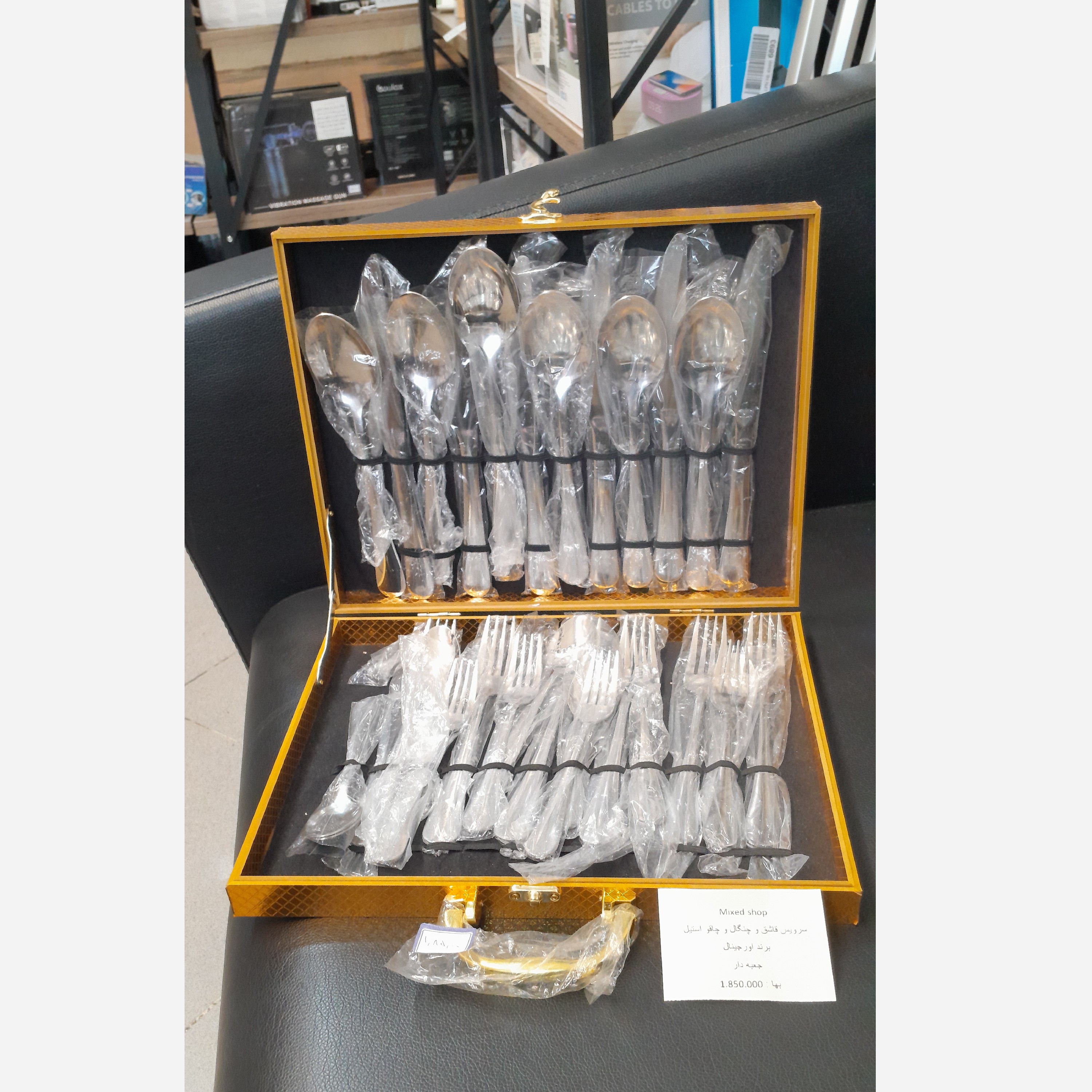 سرویس 6 نفره قاشق و چنگال و چاقو جنس استیل ضد زنگ طراحی سبک و شیک طرح چمدانی