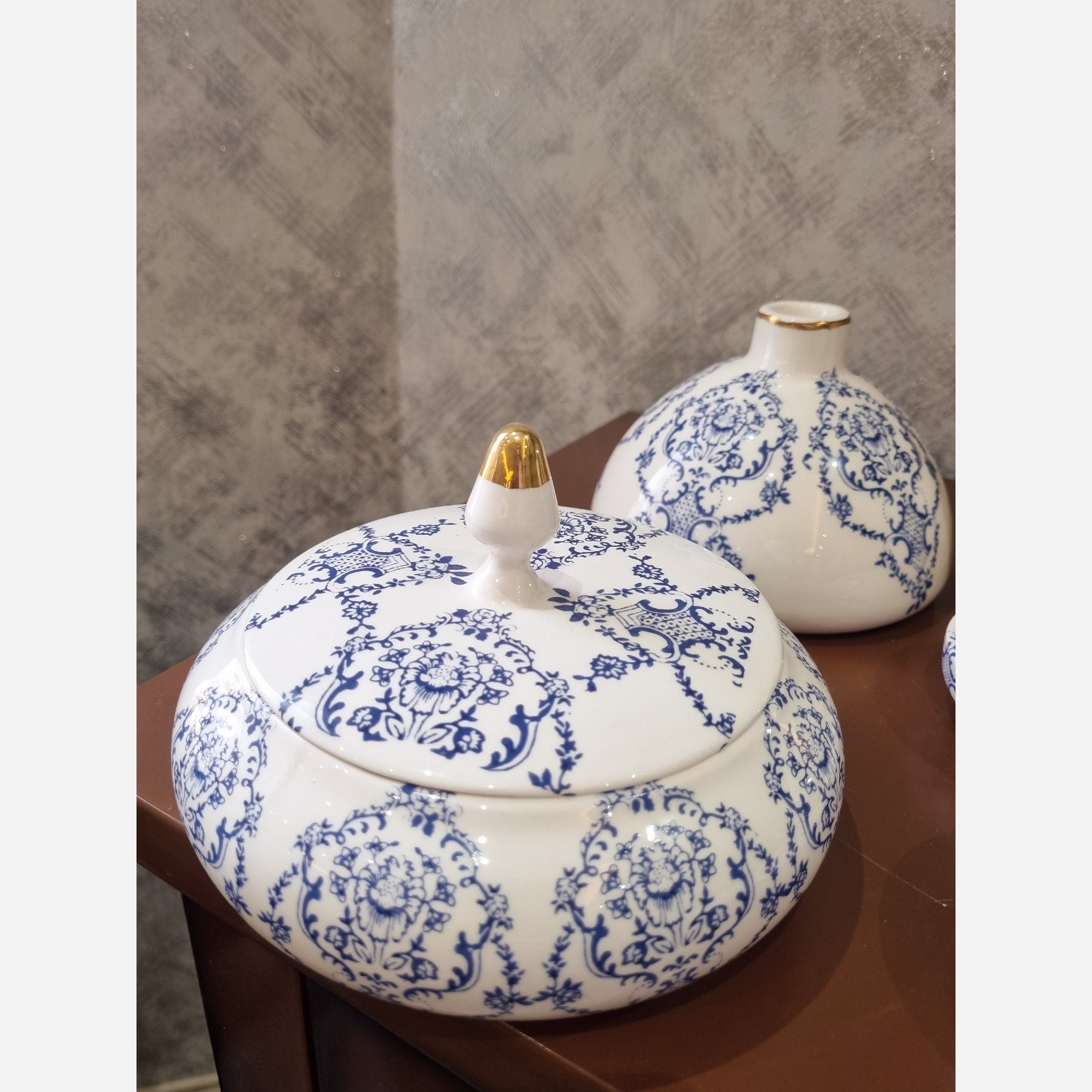 شکلات خوری سرامیکی طلادار قلم آبی طرح داماس مبلمونسرا مدل 296435