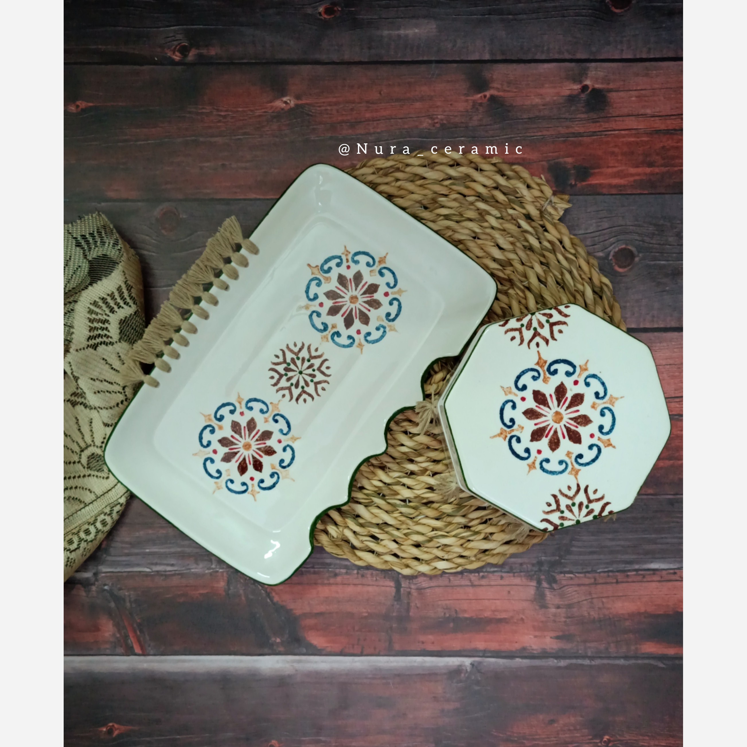 رولت خوری سرامیکی و شکلات خوری سرامیکی کاملا دست ساز کاملا مصرفی نقاشی زیرلعابی قابل شستشو با انواع شوینده پخت شده با دمای بالای 1080