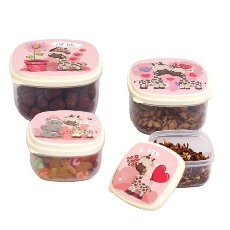 _ظروف 4 عددی با 4 طرح متفاوت _جنس بدنه پلاستیک شفاف _قابل استفاده در فریزر و ماکروویو _ابعاد سایز 1: 4*8*8 سایز 2: 5*9.5*9.5 سایز 3: 6.5*11*11 سایز 4: 7.5*12*12