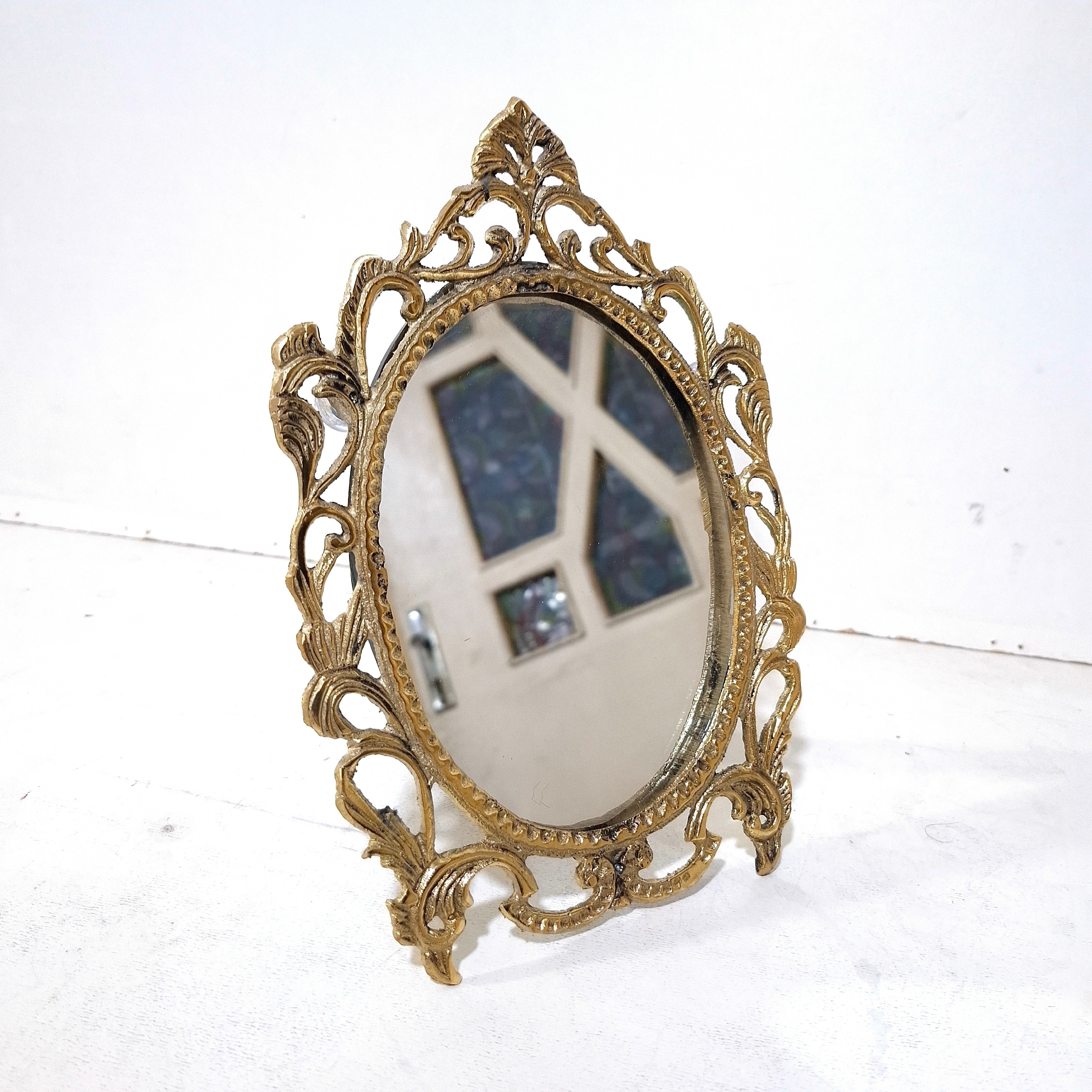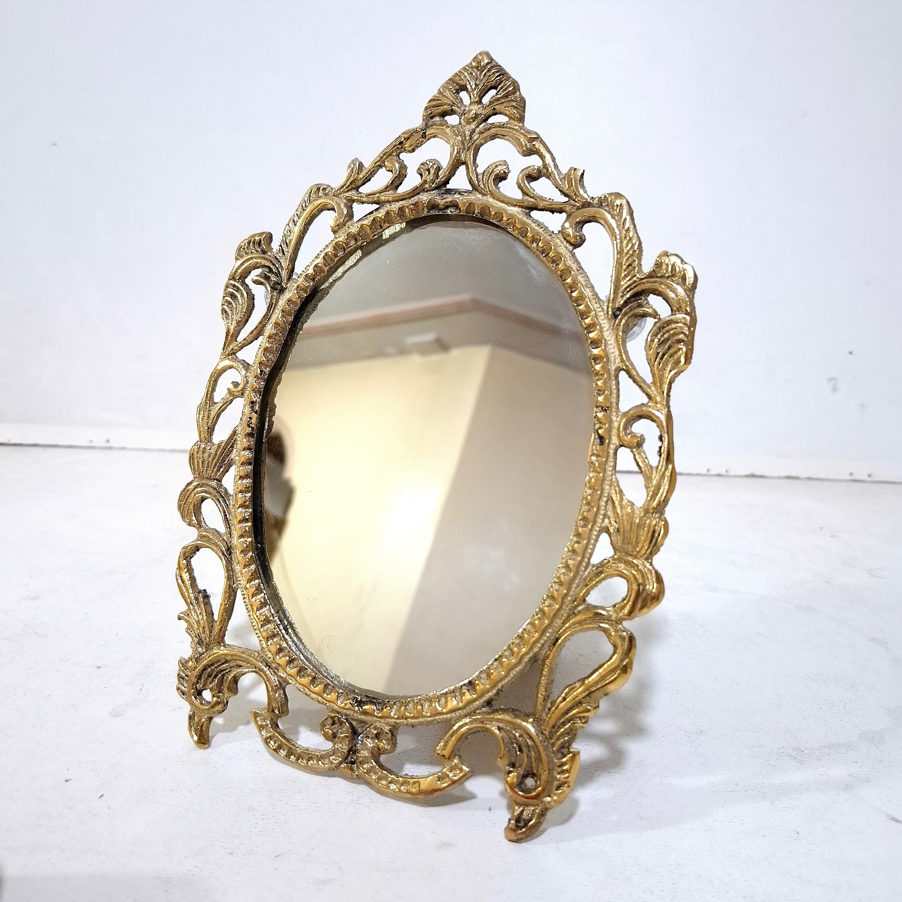 آینه برنجی یک عدد آینه مدل پایه دار با ارتفاع 25 سانتیمتر با سطح کیفیتی درجه یک بسیار زیبا و مناسب استفاده دائم و قابل شستشو