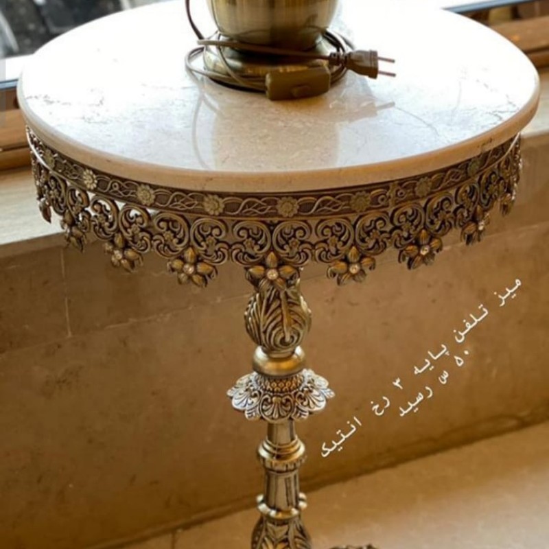 میز تلفن خاطره سنگ رویی مرمریت درجه یک قطر سنگ رویی 40 سانتی متر ارتفاع میز 75 سانتی متر رنگ زیتونی براق قابل ارائه در رنگ طلایی خرید مستقیم از تولید کننده ارسال محصول به وسیله باربری است و هزینه ارسال تا باربری شهر مقصد رایگان میباشد.