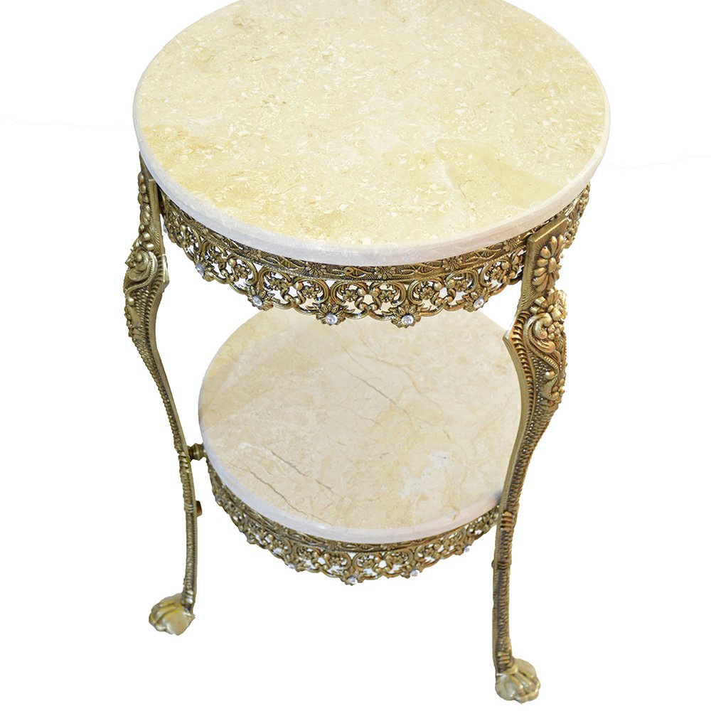 میز تلفن دو طبقه خاطره با سنگ مرمریت قطر سنگ رویی 40 سانتی متر قطر سنگ زیری 35 سانتی متر ارتفاع میز 68 سانتی متر رنگ زیتونی براق یا طلایی به سفارش مشتری خرید مستقیم و بدون واسطه از تولید کننده ارسال محصول به وسیله باربری است و هزینه ارسال تا باربری شهر مقصد رایگان میباشد.