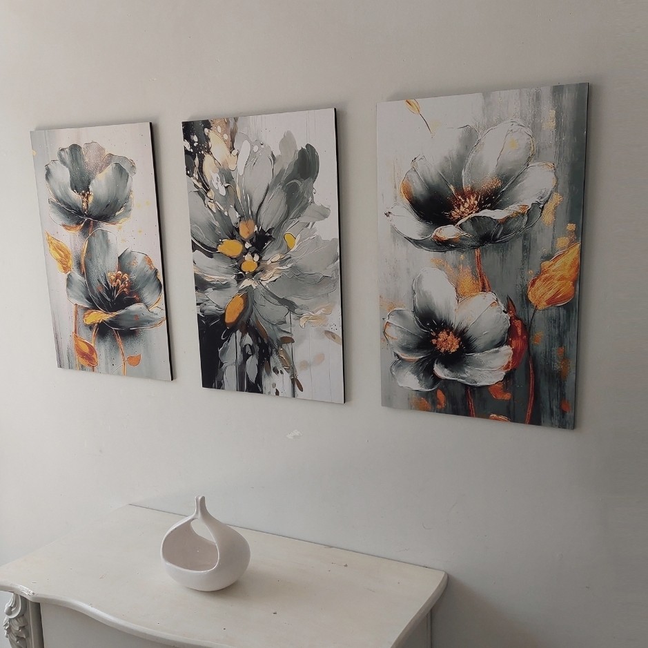 تابلوها به صورت چاپ عکاسی و چوب ام دی اف ❇️هر ست تابلوشامل سه عدد شاسی هست که سایز هر عدد شاسی 33 در 55 ❇️بسیار زیبا و چشم نواز ❇️کیفیت دقیقا مشابه عکسی که میبینید ❇️قابل پاک کردن با دستمال مرطوب ❌بدون قاب و شیشه