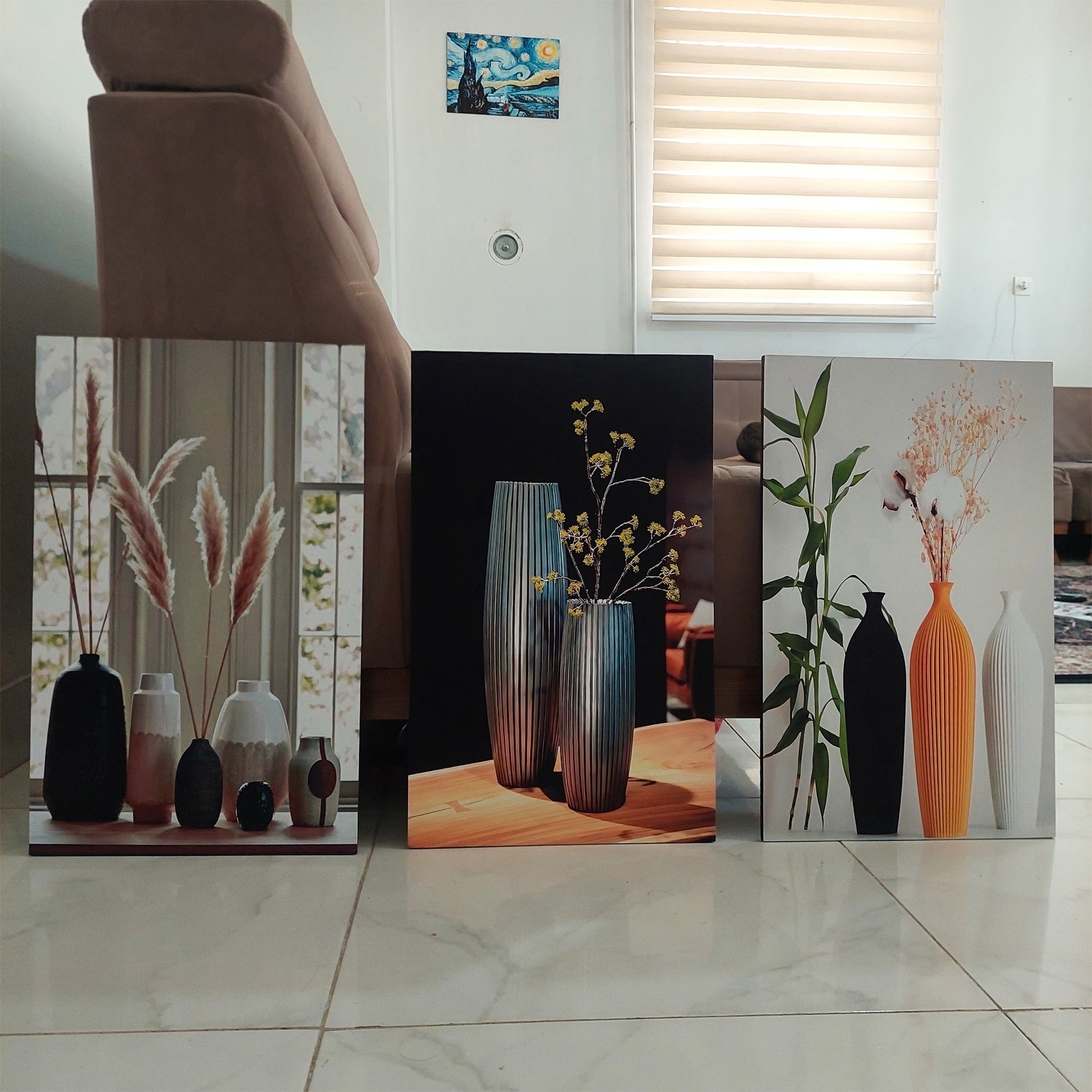 تابلوها به صورت چاپ عکاسی و چوب ام دی اف ❇️هر ست تابلوشامل سه عدد شاسی هست که سایز هر عدد شاسی 33 در 55 ❇️بسیار زیبا و چشم نواز ❇️کیفیت دقیقا مشابه عکسی که میبینید ❇️قابل پاک کردن با دستمال مرطوب ❌بدون قاب و شیشه