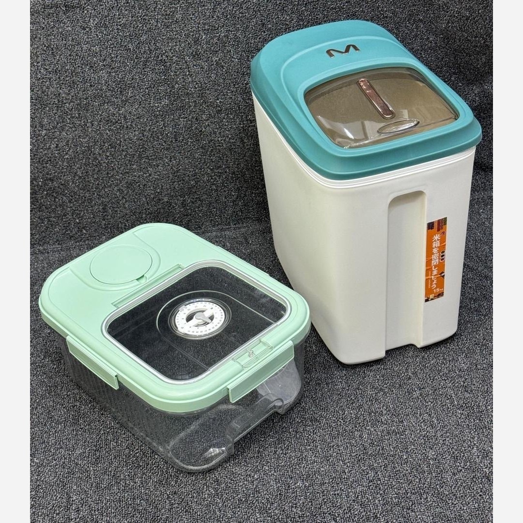 جابرنجی درسه سایز ودورنگ شارژ شد😍😍😍 👈وارداتی و کیفیت عالی 👈جنس بدنه ترکیب پلی پروپیلن 👈پلیمرترموپلاستک و اکرولیک 👈خروج برنج با پیمانه 👈دارای محفظه نگهدارنده سیر و میخک جهت جلوگیری از حشره زدن برنج و حبوبات دارای پیمانه با طراحی سبد شست و شو در سه حجم :👇